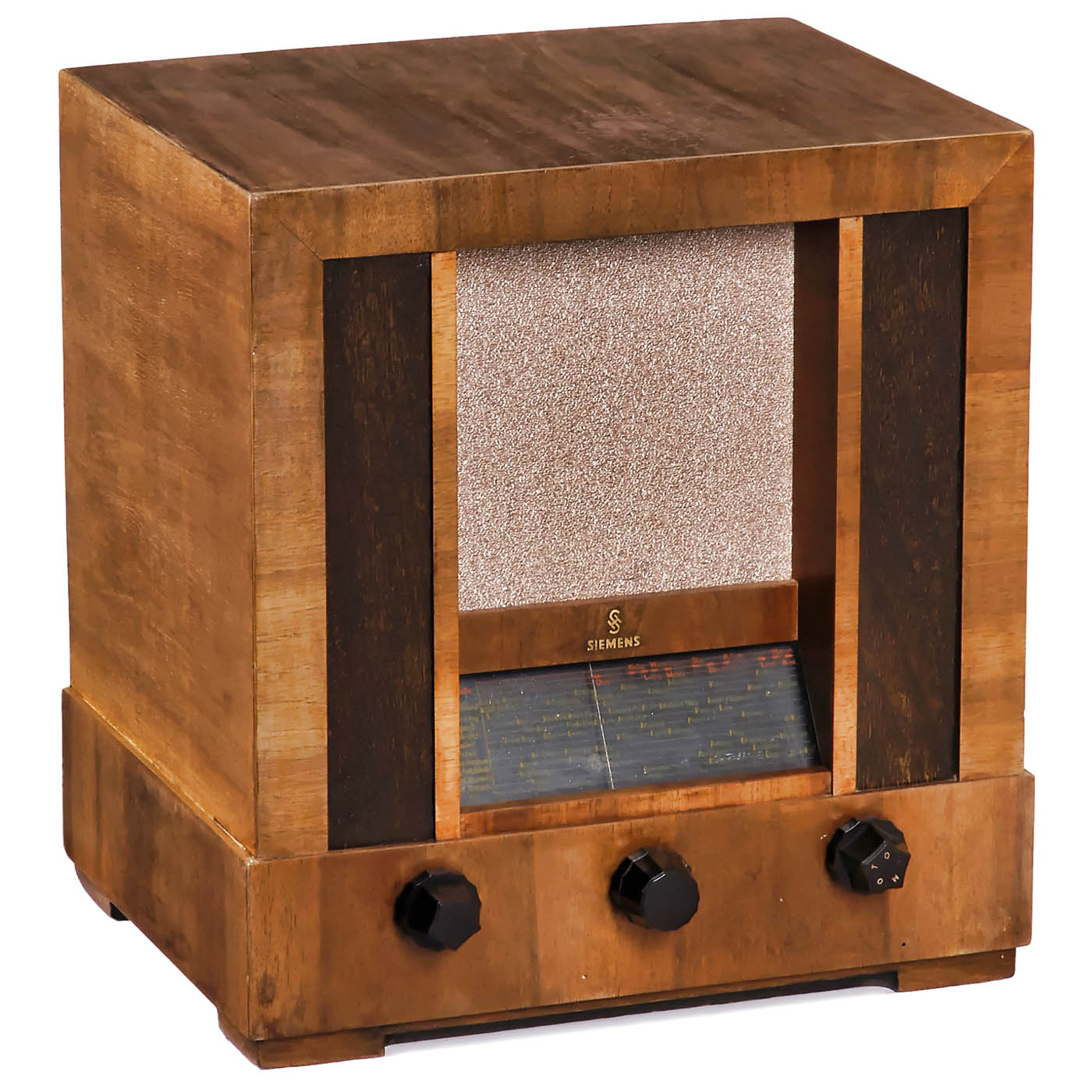 1) Reflex-Super 37WL, c. 1934, Siemens & Halske, Berlin, 4 tubes, long wave and medium wave, 110–240 volts AC, wood case, dynamic loudspeaker. – 2) Synchron-Selectiv 330WL, c. 1934, Saba, Schwer & Söhne, Villingen, Germany, 4 tubes, long wave and medium wave, 110–240 volts AC, dynamic loudspeaker, bakelite case. – 3) Philips 630A, c. 1933, Philips, Germany, 6 tubes, long wave and medium wave, dynamic loudspeaker, wood case. – And: 4) Barcarole 750A-30, c. 1937, Philips, Germany, 6 tubes, 3 wave ranges, 110–245 volts AC, dynamic loudspeaker, wood cabinet.