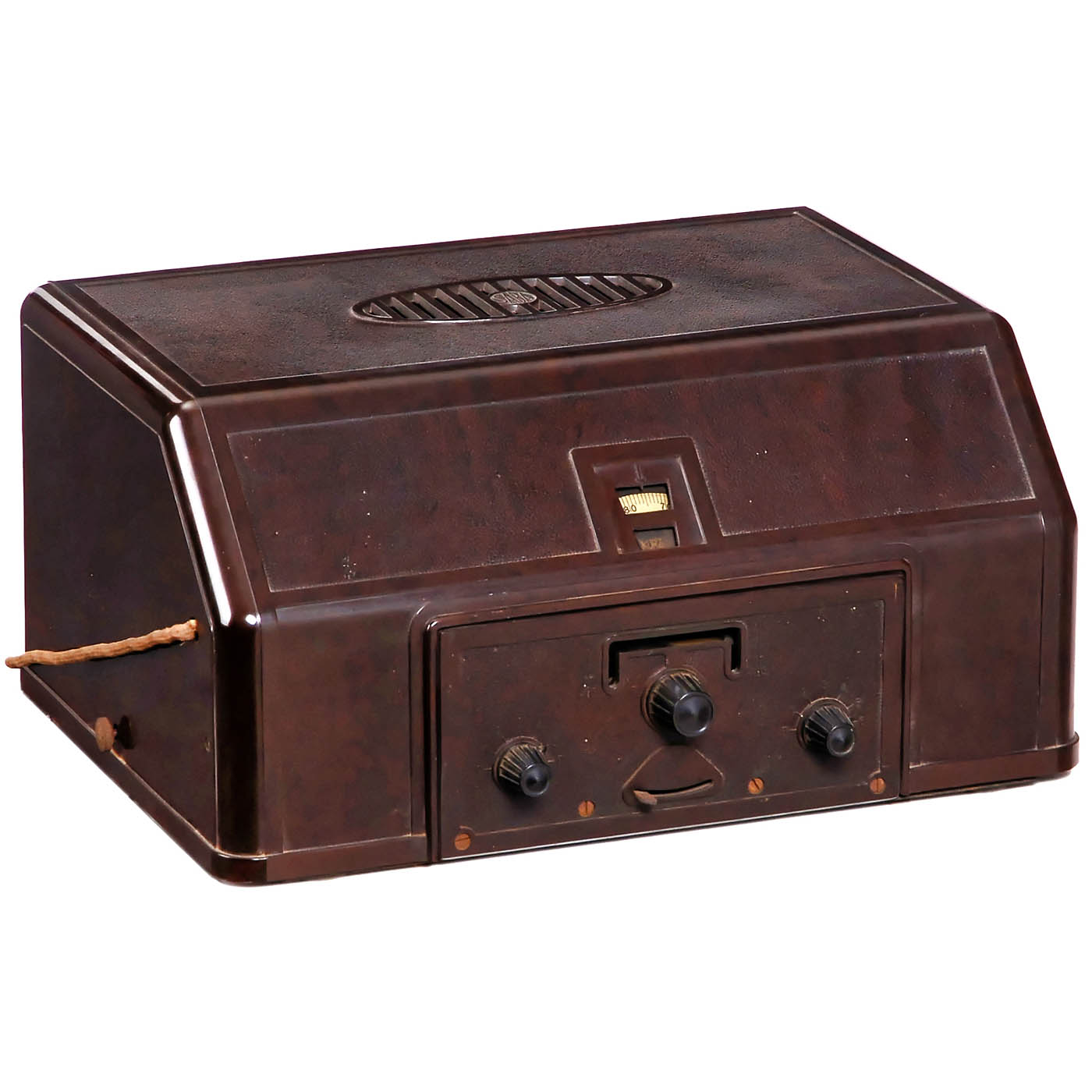 1) Columbus 94W, c. 1933, Roland Brandt, Berlin, inductor dynamic loudspeaker, MW + LW, 4 tubes, 110–220 volts AC, bakelite case, rear panel added. – 2) Mende 138W, c. 1933, 5 tubes, 110–220 volts AC, for external loudspeaker, bakelite case, original back panel. – 3) Tefadyn 200/38GW, c. 1939, Telephon Aktiengesellschaft, formerly J. Berliner, 5 tubes, 3 wave ranges, all-current set, dynamic loudspeaker, wood case. – And: 4) Saba 33W, c. 1930, Schwer & Söhne, 4 tubes (missing), bakelite case.