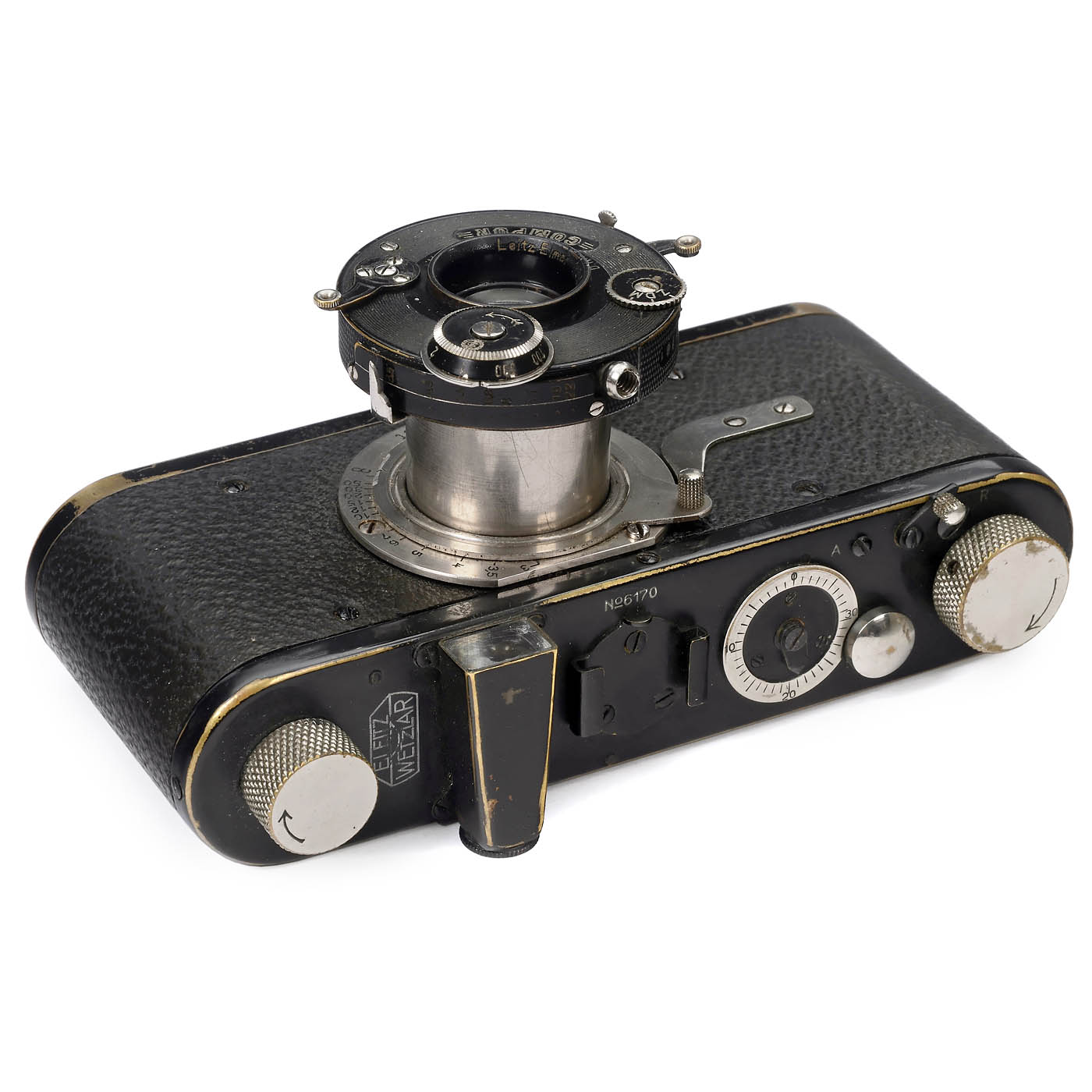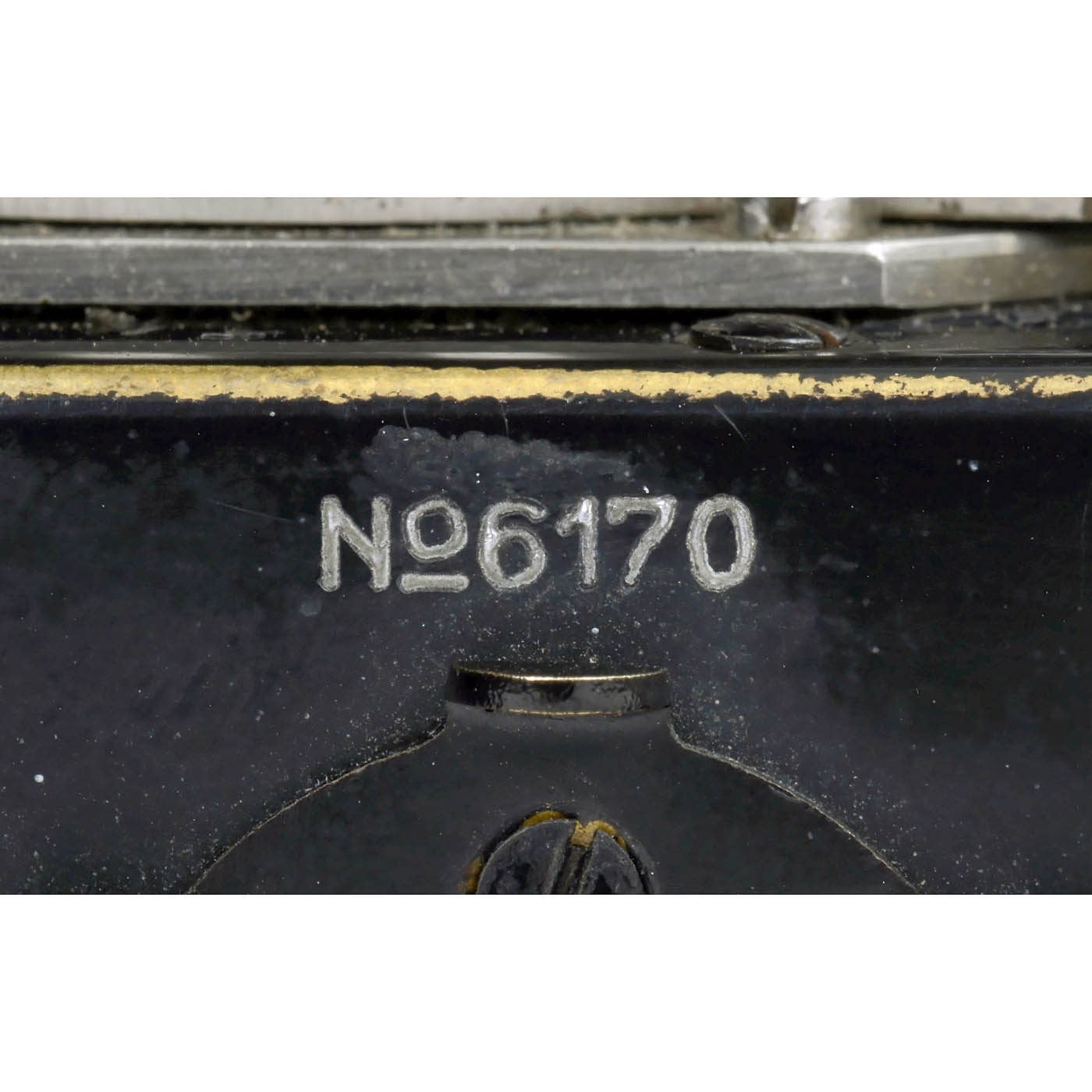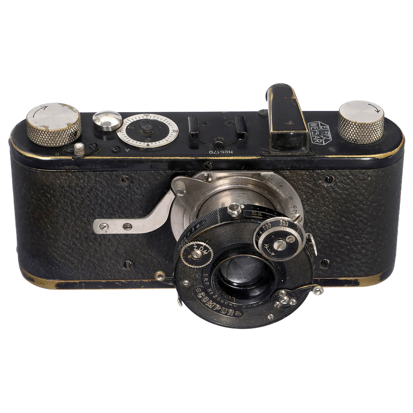 Leitz, Wetzlar. No. 6170, with Elmar 3,5/50 mm in dial-set Compur, no. 657181, feet scale. Shutter works well, even the long times. This model B in dial-set is one of the most sought-after of all Leicas!