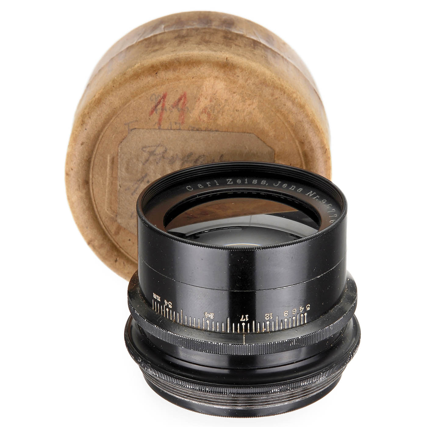 Carl Zeiss, Jena. No. 95776, in usual mount VII with aperture-scale in millimeters, both lens elements of the Protar IIIA Nr. 7 unscrewable, with original maker´s box, glass clean. Note: According to the catalog from 1901, a sharp picture with a diameter of 63 cm was possible using small apertures. This was recommended for 18 x 24 cm. The screw mount of the VII is identical to the screw mount for the later Compound III (1910–60). – Very rare Zeiss lens.