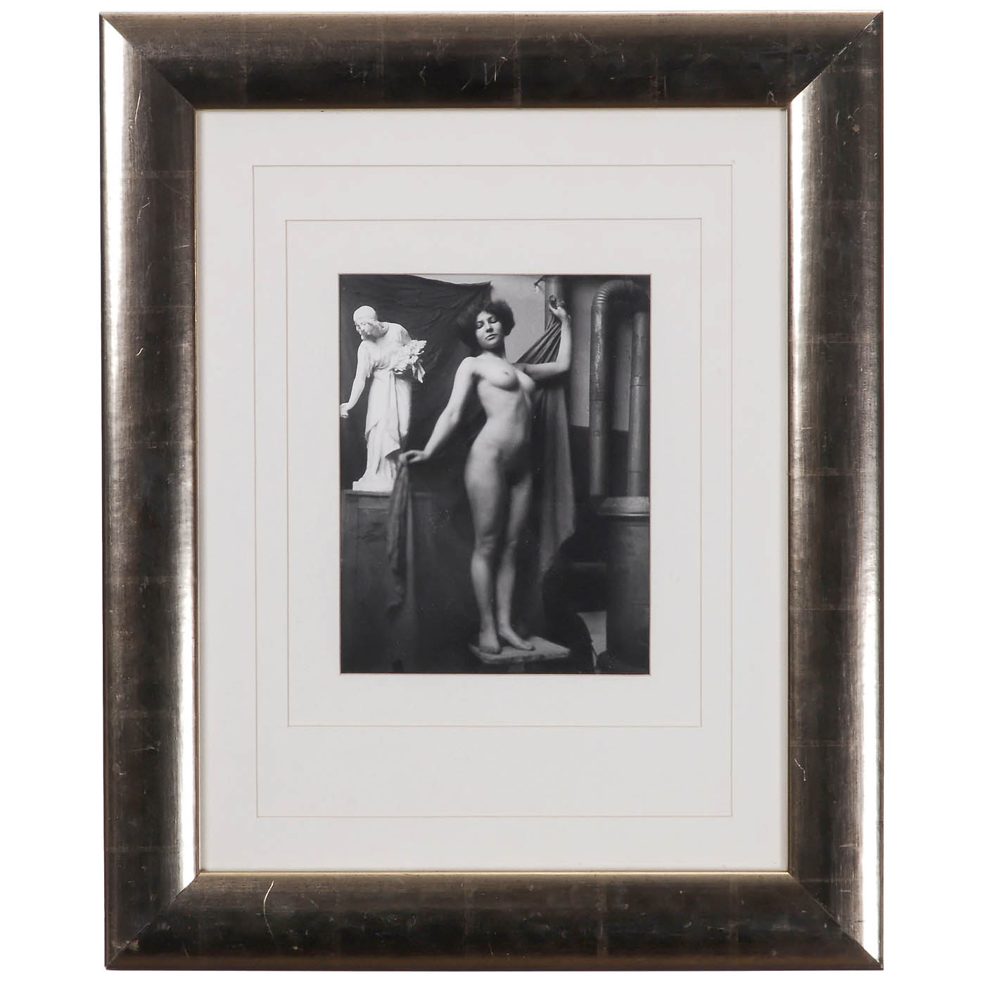 Heinrich Zille (1858–1929), Berlin graphic artist, painter and photographer. Nude study "Standing pose with cloth" (catalog raisonné Kaufhold 285), Atelier August Heer, winter 1899/1900, print from the glass negative from the estate, picture dimensions 7 x 9 in., dimensions with passe-partout and frame 17 ⅓ x 21 ⅕ in.