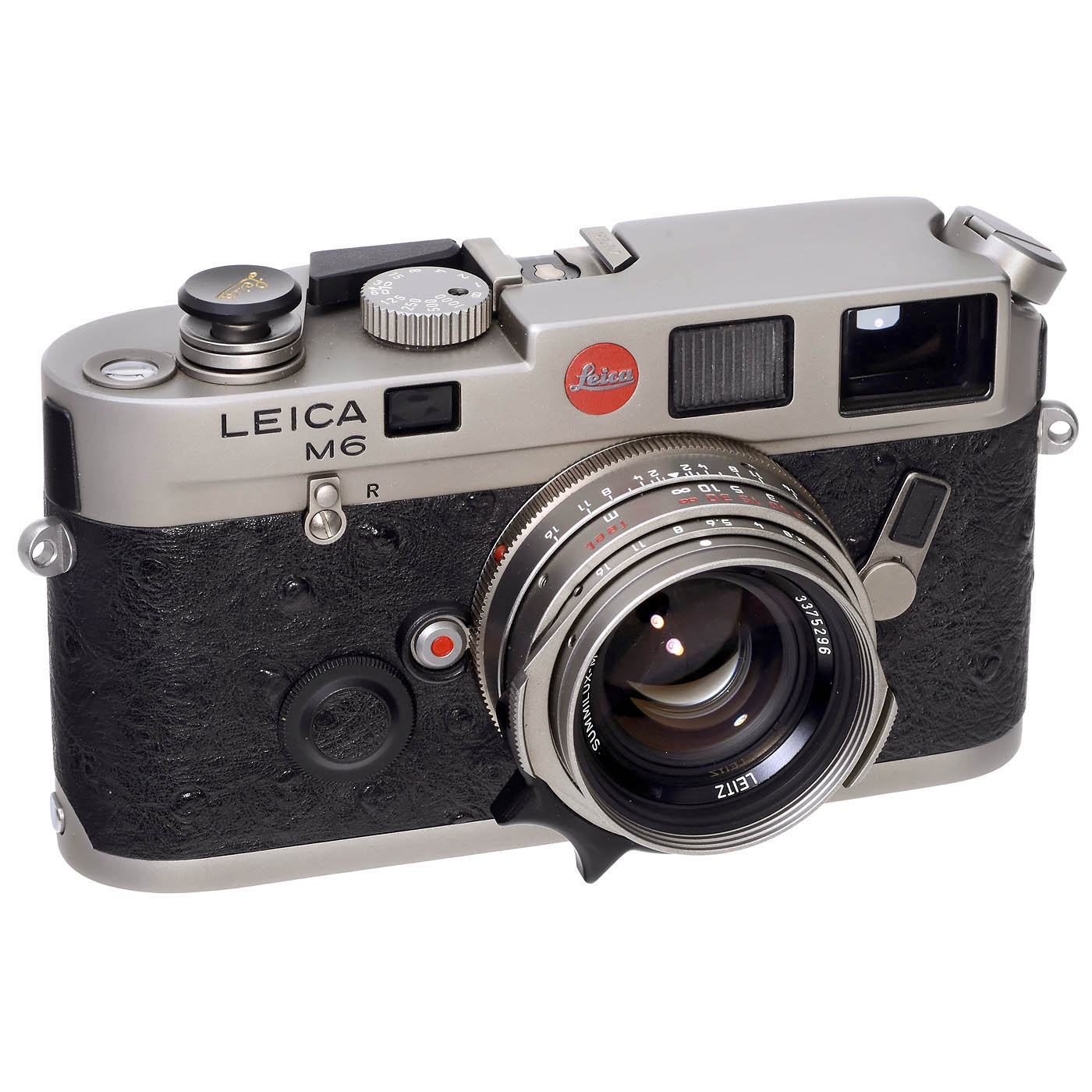 Leica Camera GmbH, Solms. Titanium-plated Leica M6, no. 1936147. With body cap, presentation case and box. Summilux-M 1,4/35 mm, no. 3375296, with front and back cap.