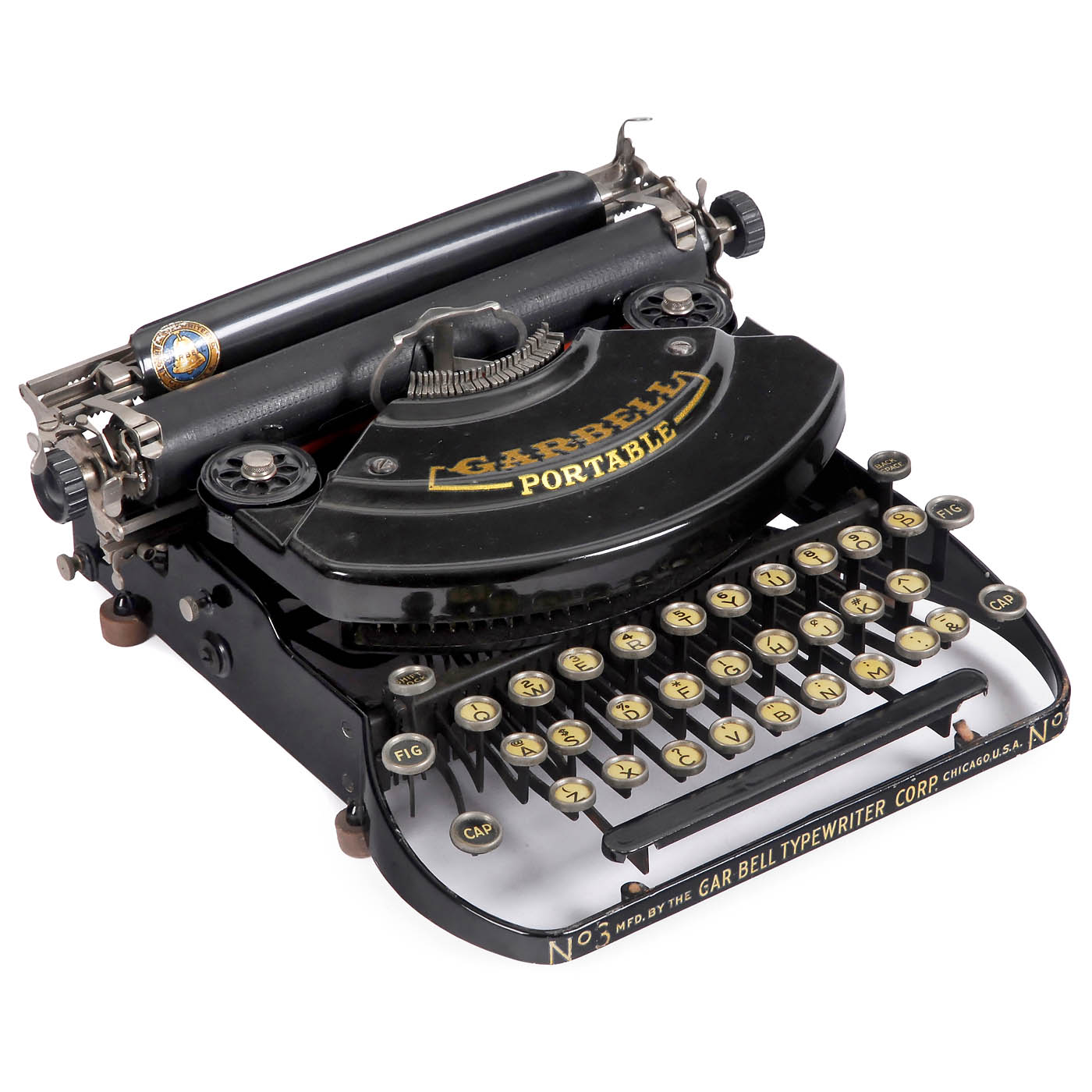 Garbell Typewriter Corporation, Chicago. Serial no. 1080, 28 keys, double-shift, three-row keyboard with a backspace, spring-loaded, thrust-action typebars. Excellent original condition, works, with case. - Note: A machine of simple construction and an unusual design, the model did not gain a foothold on the market and is accordingly rare today.