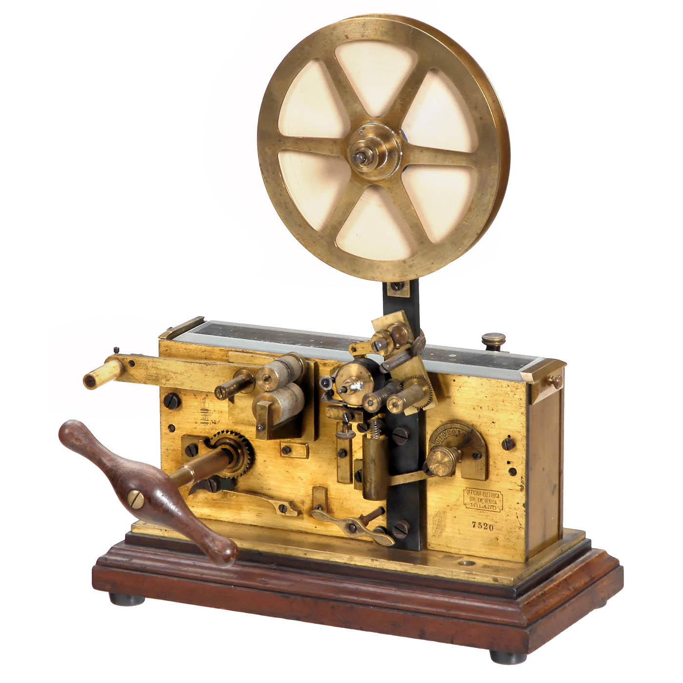 No. 7520, the reverse with official post office stamp "RR" (Regie Poste). The unit consists of a telegraph receiver with winding key and wheel with paper tape, a second wheel to collect the used paper tape, a standard "Forcieri" model Morse key with line switch, an unmarked key, a "Svizzero" line switch (standard in the Italian post offices), two “Precision Milano" galvanometers (also standard in the Italian post offices), a spare paper tape, a small ink bottle and a photocopy of the instructions from the book "ll Telegrafo Morse", 1934. - The Italian telegraphs were of the standardised "Hipp" model, built under license by various companies such as Gerosa, Rosati and Ferreri & C. etc. from 1870 to the end of WWII. Fratelli Gerosa was founded in 1873 and absorbed in 1909 by the Italian Western Electric, dating the present example to the late 1800s or early 1900s. The equipment was used to demonstrate telegraph operation at communication exhibitions. - It is in excellent aesthetic conditions and working condition.