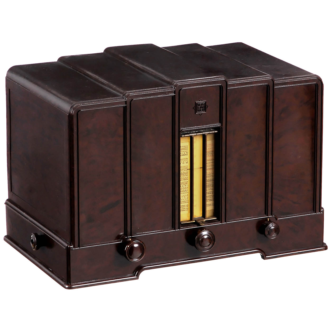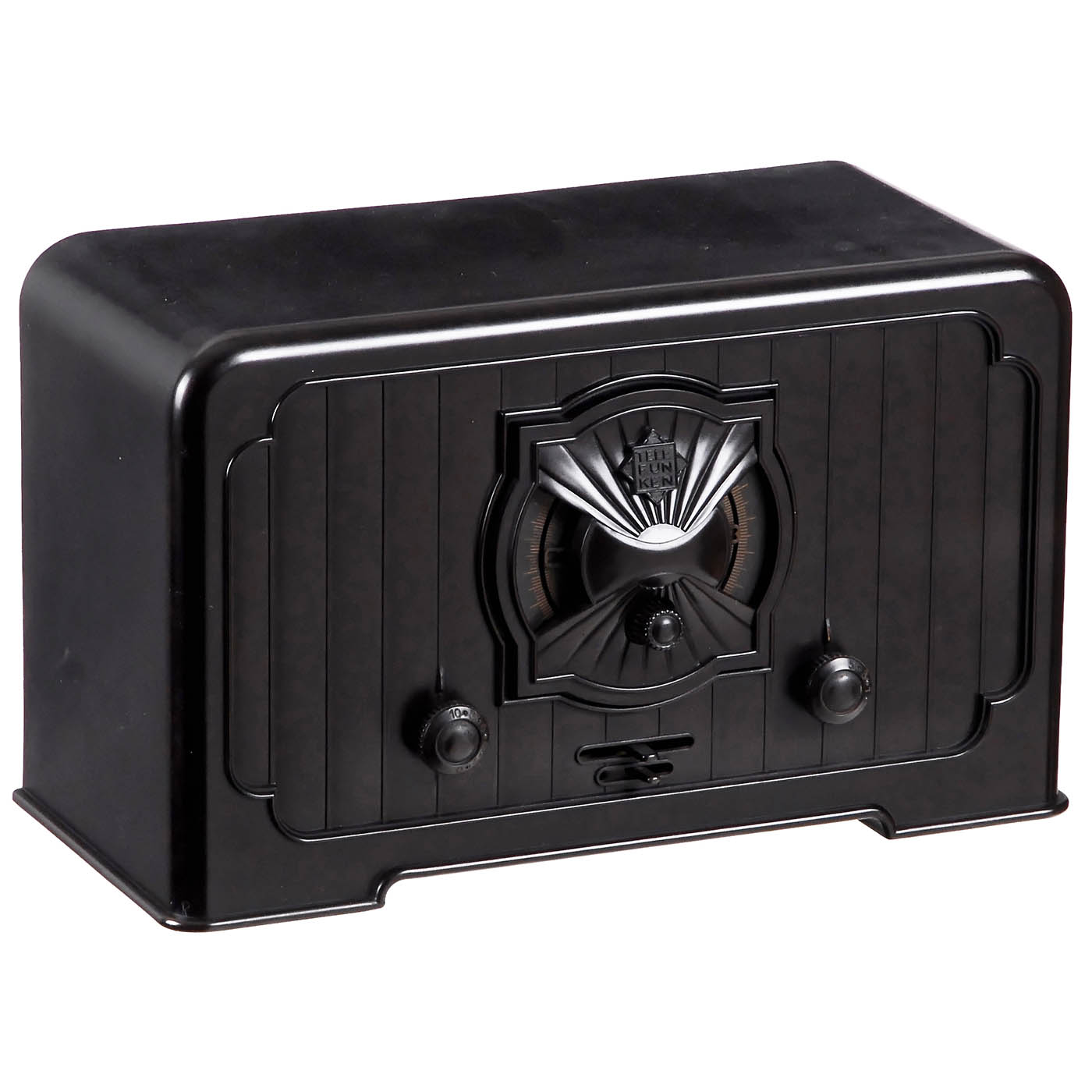 1) "Small Cat’s Head" model 230W, c. 1931, Telefunken Germany (TFK), four tubes, long wave and medium wave, 107-220 volts AC, for external loudspeaker, complete with tubes and back panel, bakelite case in good condition. - 2) Model 33W, c. 1931, Telefunken Germany (TFK), four tubes, long wave and medium wave, 117-220 volts AC, for external loudspeaker, complete with tubes and back panel, bakelite case in good condition. - 3) Model 122GL, c. 1932, Telefunken Germany (TFK), two tubes, long wave and medium wave, DC mains unit/110-220 volts, built-in dynamic loudspeaker, complete with tubes and back panel, bakelite case in good condition. - 3) Model 343G, c. 1932, Telefunken Germany (TFK), four tubes, long wave and medium wave, DC mains unit/110-220 volts, for external loudspeaker, complete with tubes and back panel, bakelite case in good condition.