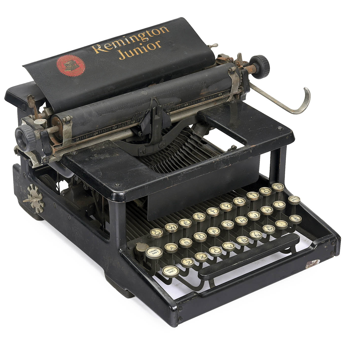 1) "Mercantile" (Armstrong Mod. 8), 1903, rare model name for the upstroke typewriter "American" (or in England: "Armstrong Mod. 8"), paper table uneven, mechanism sticks. – Literature: Martin, 1949, p. 125. – 2) "Remington Junior", 1917, three-row frontstroke machine, partially rusty. – And: 3) "Royal Standard No. 1", four-row flatbed frontstroke machine, mechanism sticks.