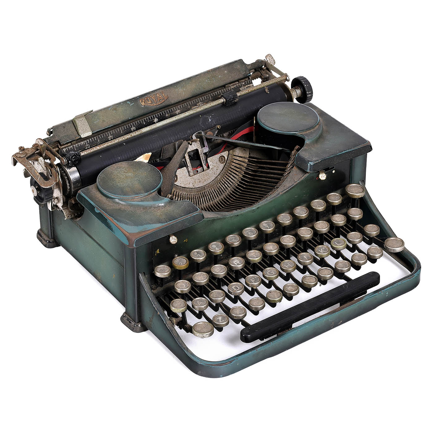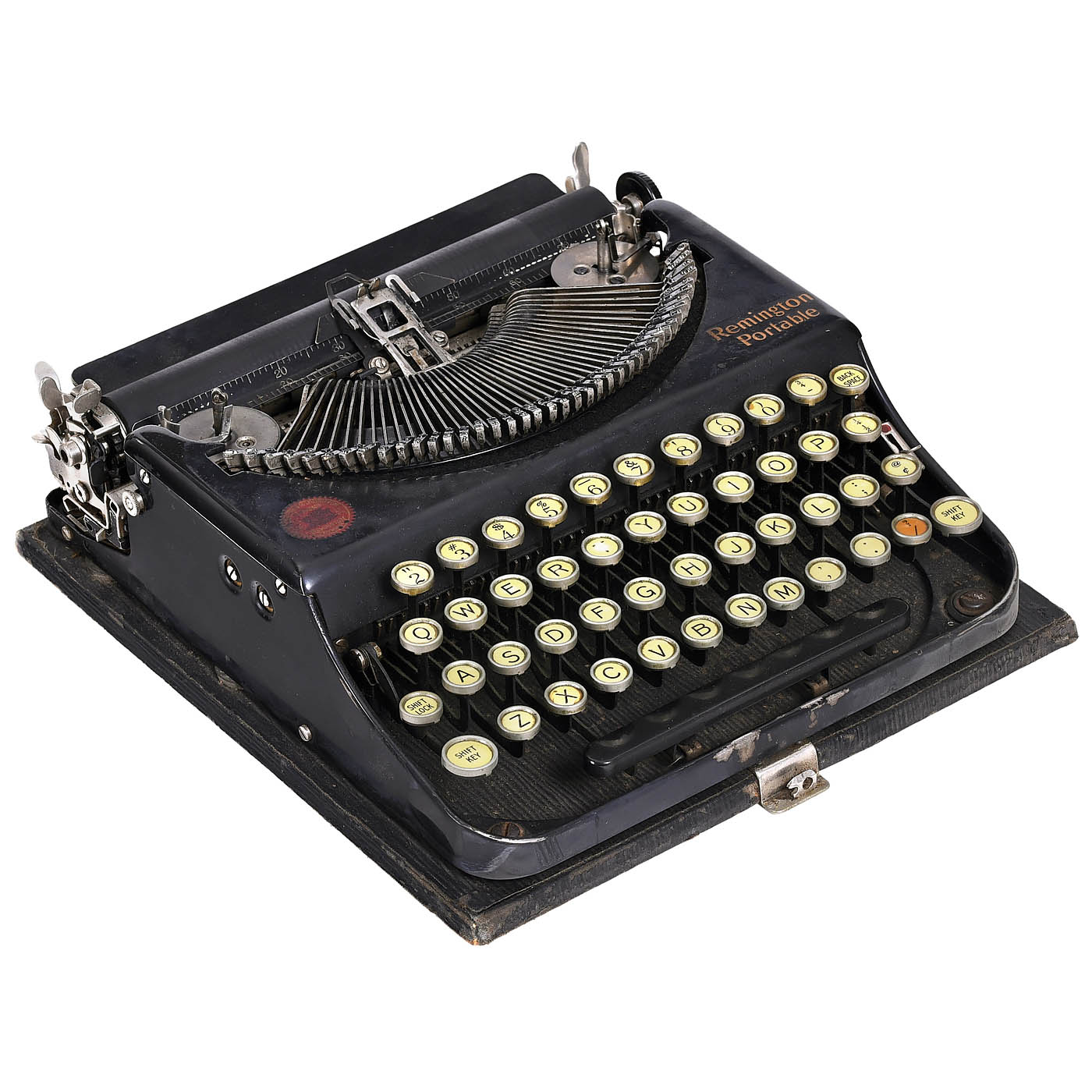 1) "Remington Rand Model 1", 1938, serial no. P43926, modern design with faceted front, working, with case. (2–3/2) – 2) "Royal Model P", green, in need of cleaning, somewhat rusty. (3–4/4) – 3) "Royal Model P", black, working, with case. (2–3/2) – 4) "Remington Portable No. 3", c. 1932, two-tone lavender, working. (3/2–3) – 5) "Corona Folding No. 3", c. 1925, platen and carriage can fold down to rest on the keyboard, with manual, in case. (2–3/2) – And: 6) "Remington Portable No. 1", c. 1925, gear-locking typebar mechanism. (3/2–3)