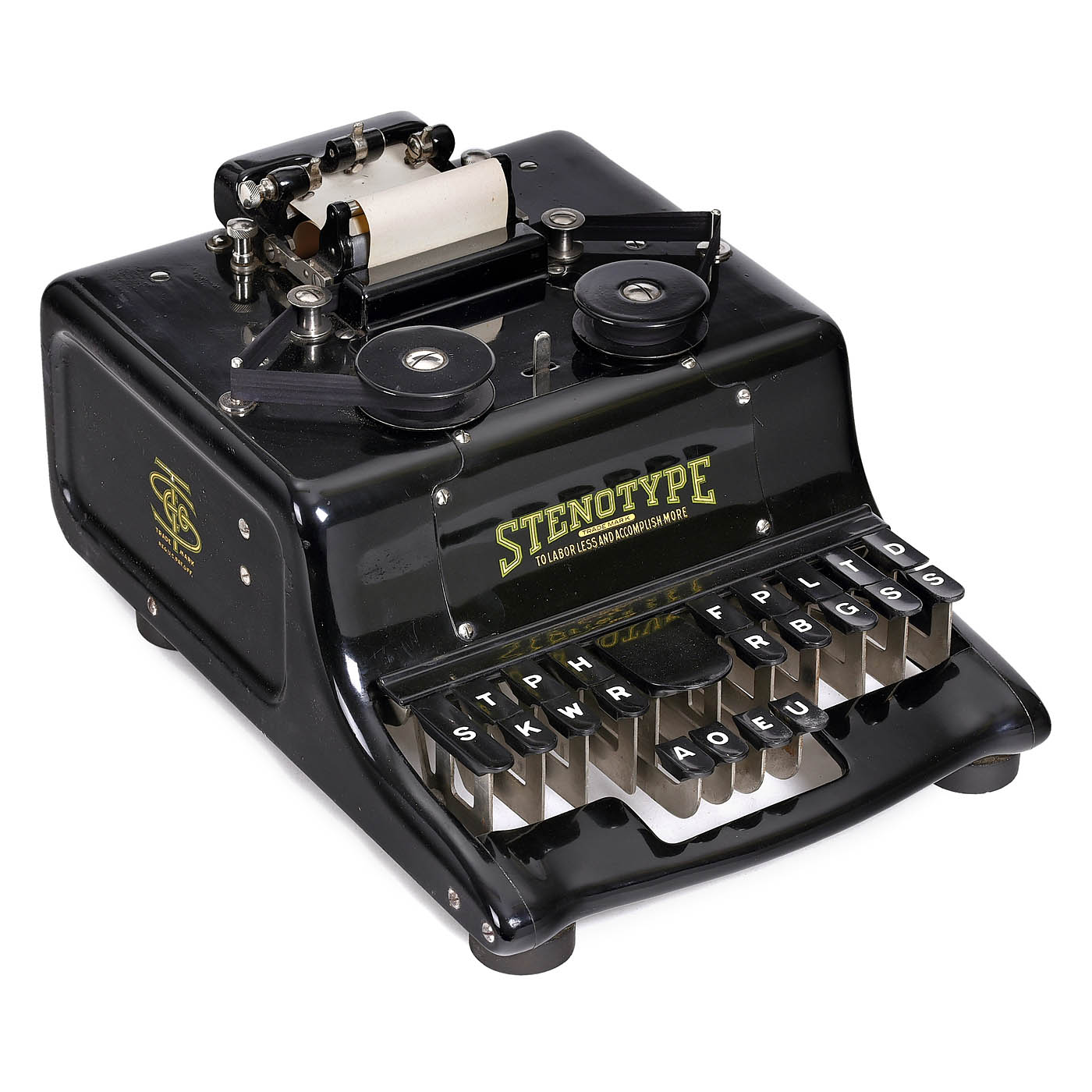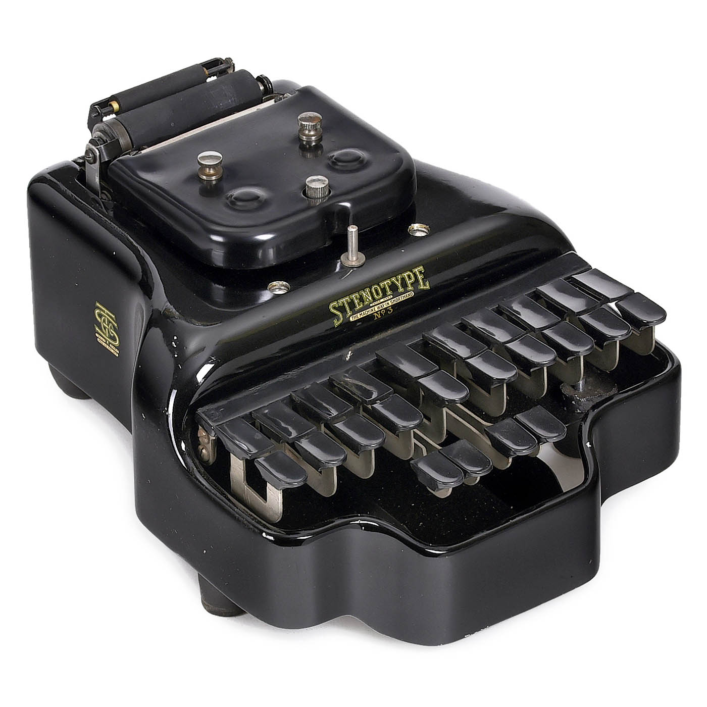 1) "The Hall Braille Writer", c. 1900, no. 22009, USA, carriage escapement defective. (3/4) – 2) "Stenotype No. 3", c. 1915, Stenotype Company of Indianapolis, Indiana, 24 keys in 3 rows, all without characters, somewhat resinous, in case. (2/3) – And: 3) "Stenotype", c. 1925, large model, Stenotype Company of Indianapolis, Indiana, 22 keys in 3 rows, with characters on the keys, with accessories in case. (2/2)