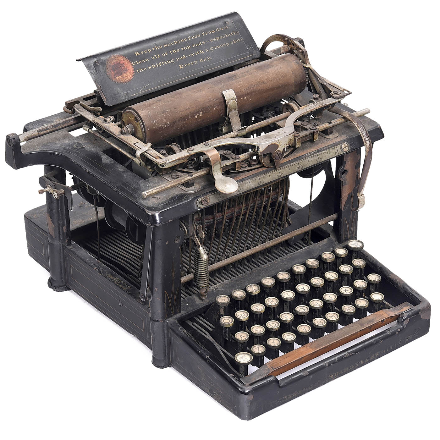 1) "The Empire No. 1", c. 1902, serial no. 33212, Williams Manufacturing Company, Montreal, Canada, thrust-action double-shift typewriter, 28 keys, working, in need of cleaning, with cover and wood base. (3–4/3) – 2) "L.C. Smith No. 8", c. 1918, with tabulator, working. (2–3/2–3) – 3) "Royal Standard No. 1", 1907, serial no. 2404, 4-row flatbed typewriter, somewhat dusty, working. (3-/2–3) – And: 4) "Remington Standard No. 2", 1890, serial no. 96922, American upstroke machine, partially rusty, carriage movement defective, with tin cover. Successor to the famous Sholes & Glidden, the first successful typewriter. (4-/4-)