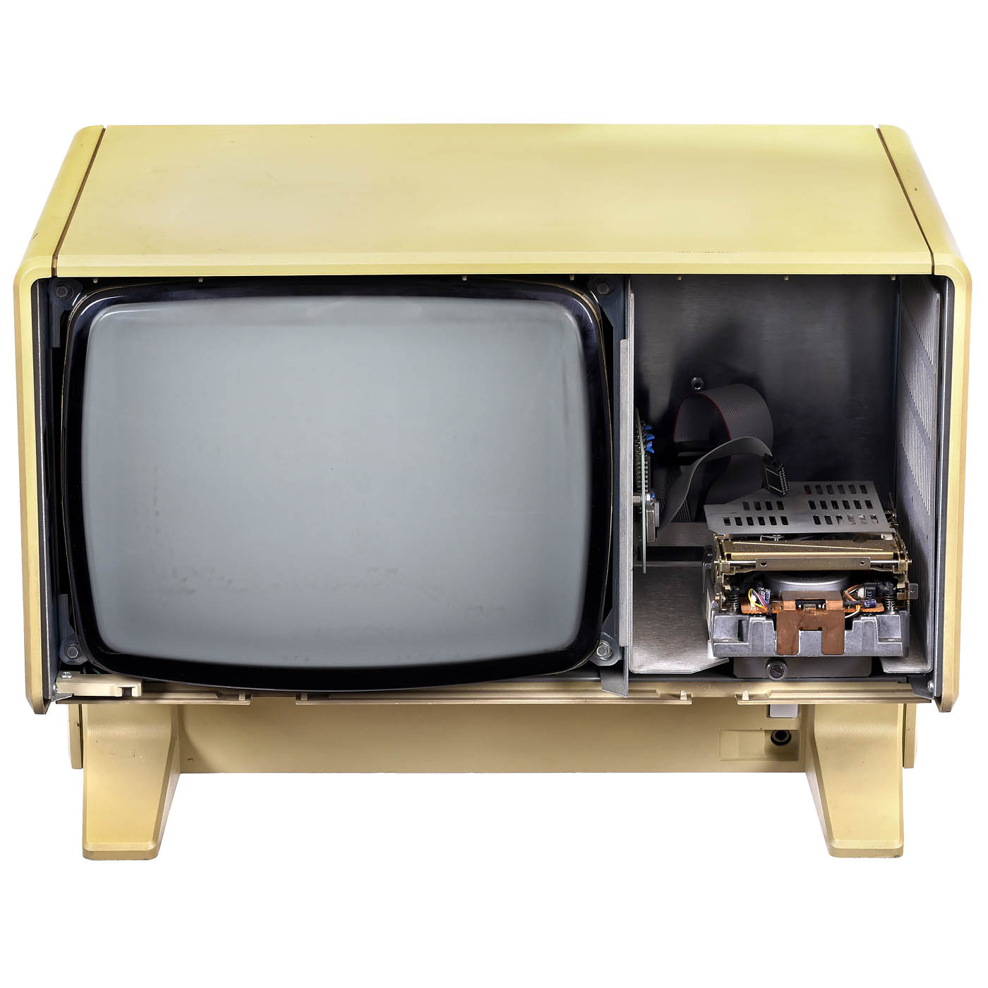 Apple Lisa 1, converted by Apple to Lisa 2/5, model no. A6SB100P, serial no. B08B831320172, Applenet no. 00103089, manufactured: 83132, with first version of the main board, 4 nickel-cadmium batteries (should be replaced), Motorola 68000 CPU and Apple ProFile hard disc model no. A0M1005. – Both for Europe, 230 volts AC. – Note: Lisa 1 was first personal computer with GUI (graphical user interface) by Apple and the predecessor of the Apple Macintosh. When the original Twiggy floppy drive proved unreliable, Apple offered all Lisa 1 owners a free upgrade to the Lisa 2: the front panel and the Twiggy-drives had to be sent back to Apple and the Lisa became the first computer fitted with a modern Sony 3.5-inch floppy disk drive. The Lisa computer was, therefore, very reliable and could even process various operating systems.