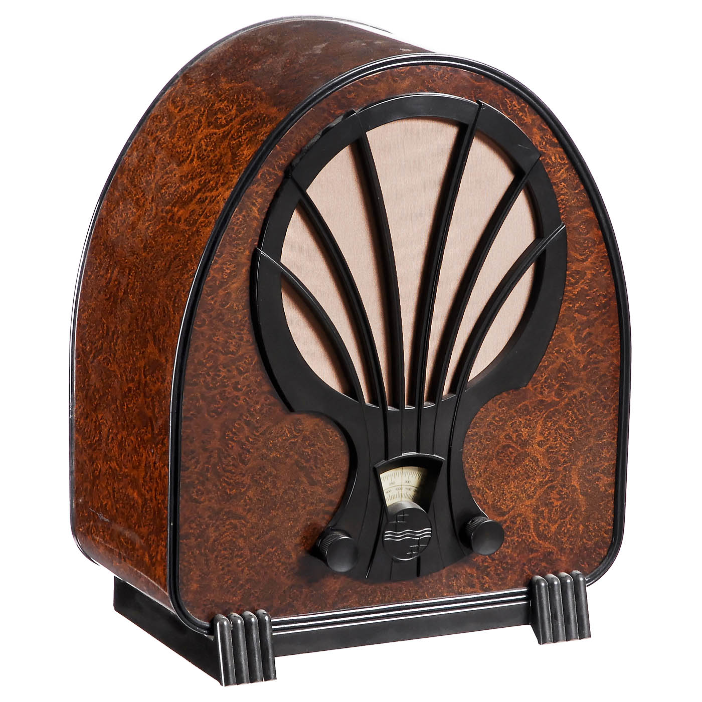 1) Model 830AS, c. 1933, 5 tubes, long wave and medium wave, 103–253 volts AC, dynamic loudspeaker, additional antenna input, Philite case, complete with tubes and rear panel. – 2) Model 2511, c. 1929, 5 tubes, long wave and medium wave, 85–253 volts AC, for external speaker, metal and bakelite case, complete with tubes. – 3) Model 2634, c. 1931, 4 tubes, long wave and medium wave, 103–253 volts AC, dynamic loudspeaker, bakelite cabinet and rear panel, complete with tubes. – And: 4) Loudspeaker model 2007 "Frying pan", c. 1929, 17 ¾ in., marbled, bakelite without damage.