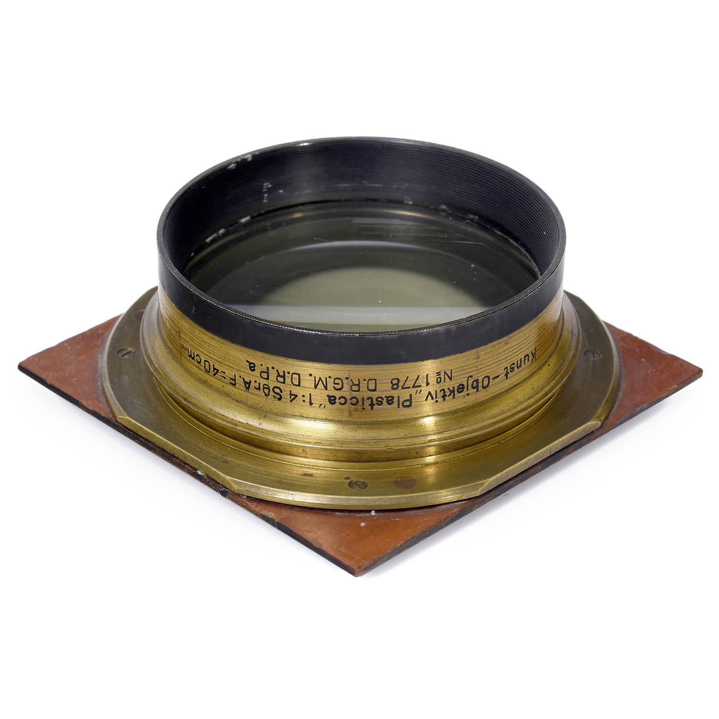 Oscar Zwierzina, Dresden-Blasewitz. No. 1778, Serie A F = 40 cm, engraved "D.R.G.M. D.R.P.a.", original yellow element with some minor cracks in the cement, otherwise good condition, ht. of the lens 41 mm x dia. 8.9 cm. – Rare and sought-after lens produced in small numbers.