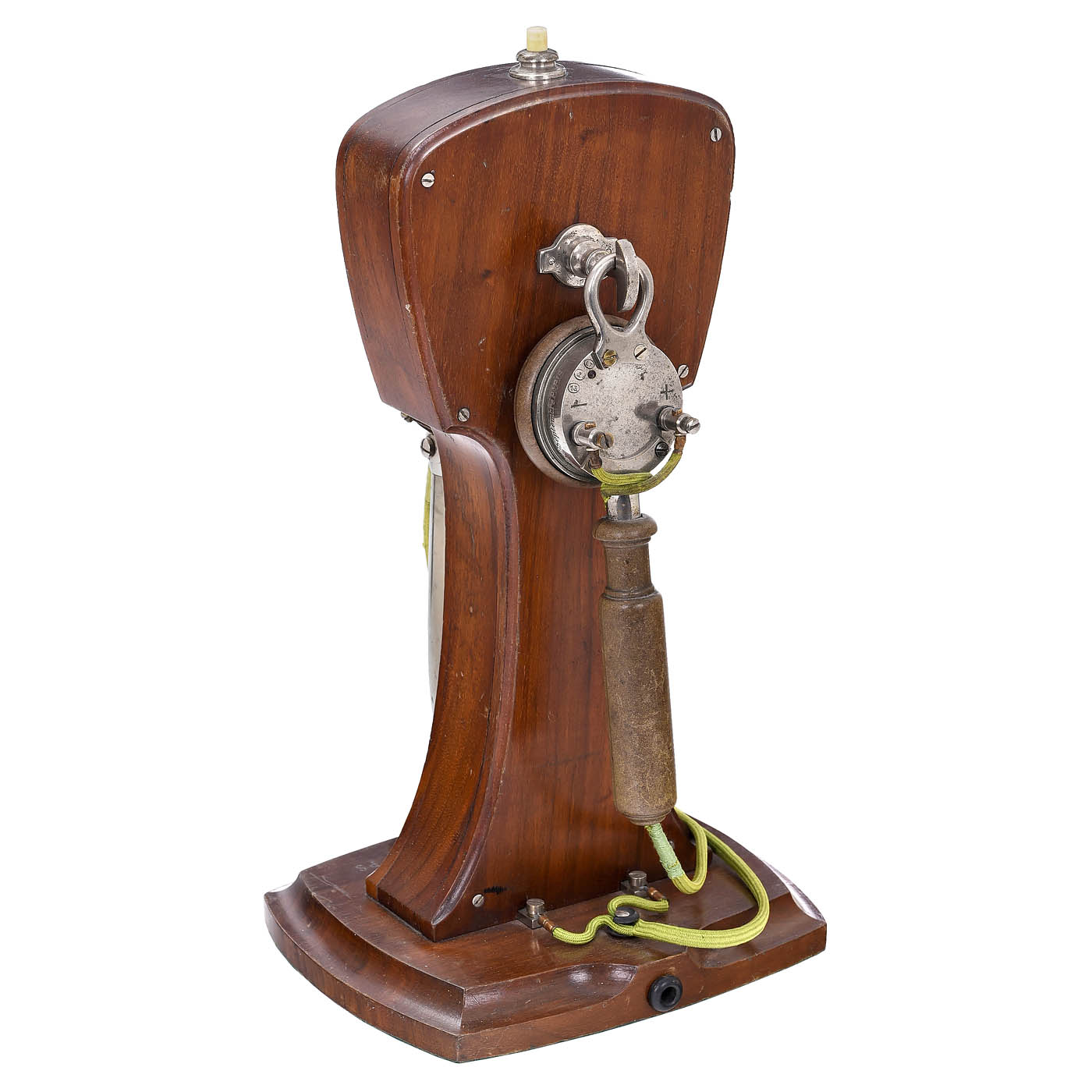Société Industrielle des Téléphones (S.I.T.), Paris, stamped on brass plaque, earphone and on the handset, walnut case, height 14 ½ in.