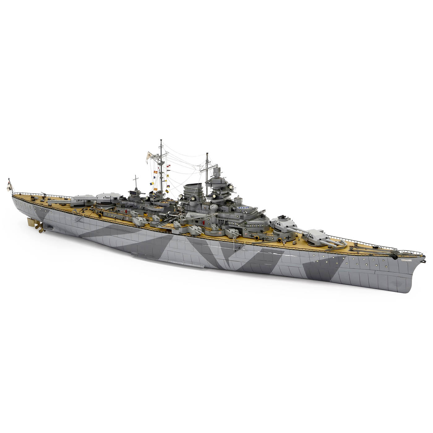 Toni Daub, 1980s, for display by the Marine-Kameradschaft Euskirchen, detailed wood model, including superstructures and weapon, lg. 252 cm. – Note: A model of the largest battleship in German history, Bismarck class, built in the Kriegsmarinewerft Wilhelmshaven, launched in 1939 and sunk by the British Air Force on 12 November 1944, length 250.5 meters, heavy armaments, 8 torpedo tubes, 4 seaplanes, speed up to 31.1 knots. According to the Traditions Decree of 2018, the model had to be removed from the rooms of the Bundeswehr.