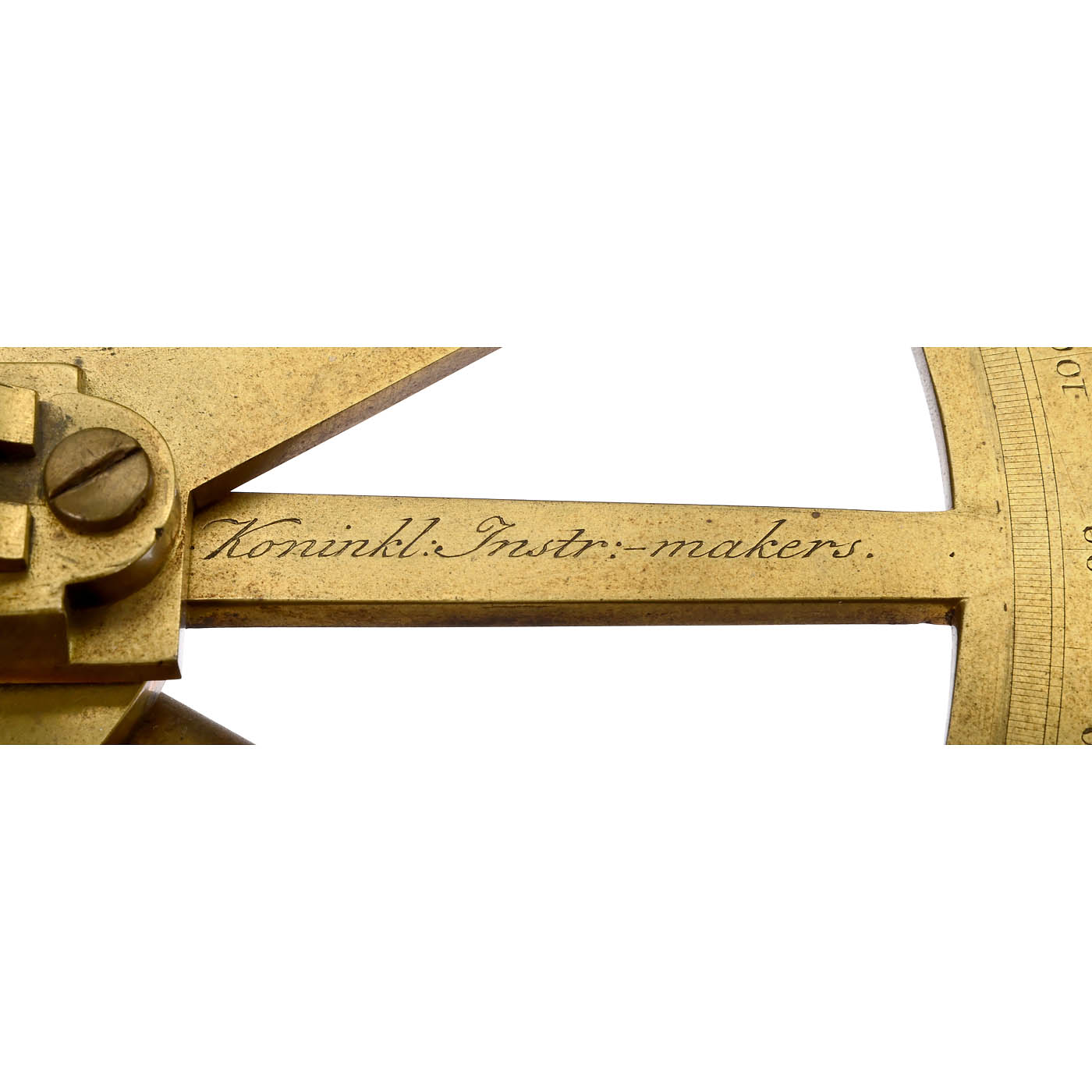 Brass, engraved: "J.M. Kleman & Zoon, Koninkl. Instr.-makers", circle Ø 8 ¼ in., vernier with fine adjustment, length of the telescopes 10 ½ in. each, height 9 in. – Literature: Ernst Zinner, "Deutsche und niederländische astronomische Instrumente des 11.–18. Jahrhunderts", p. 409.