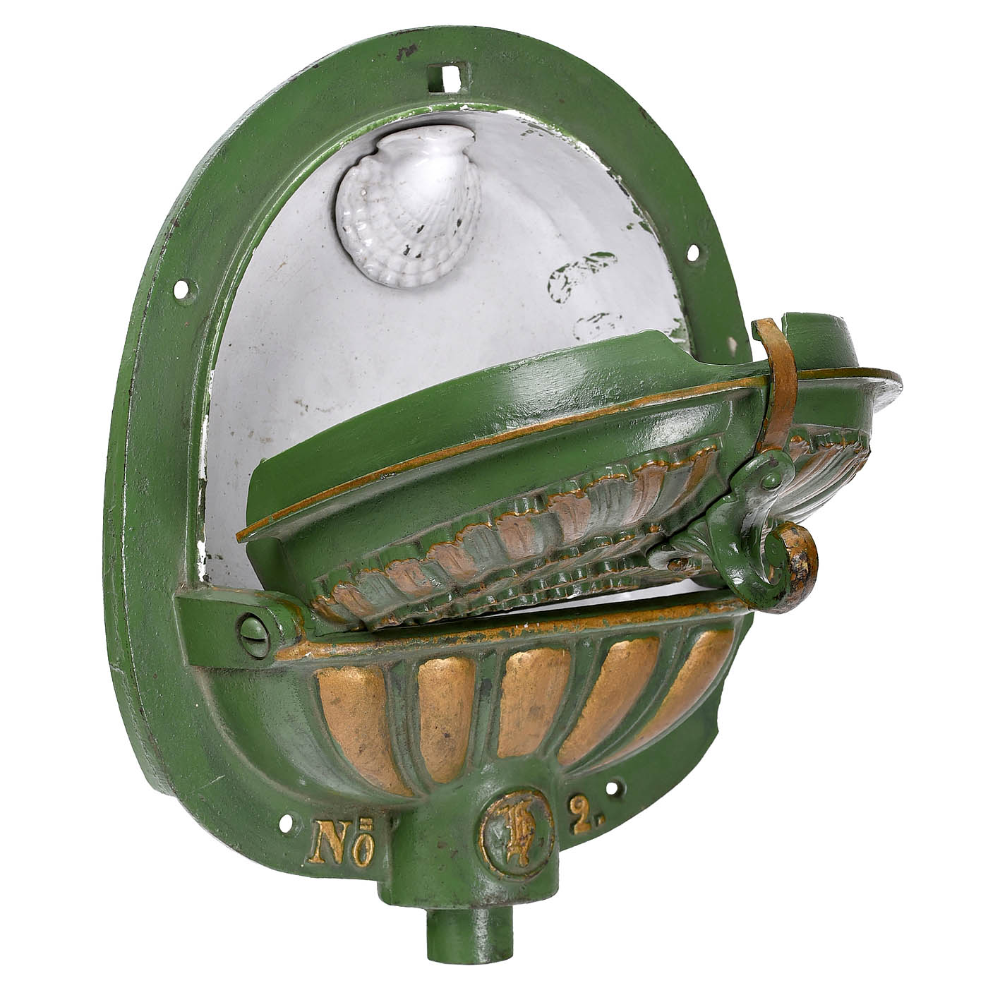 No. 2, lacquered cast metal, enameled inside, with flap, for water flushing, height 13 in.