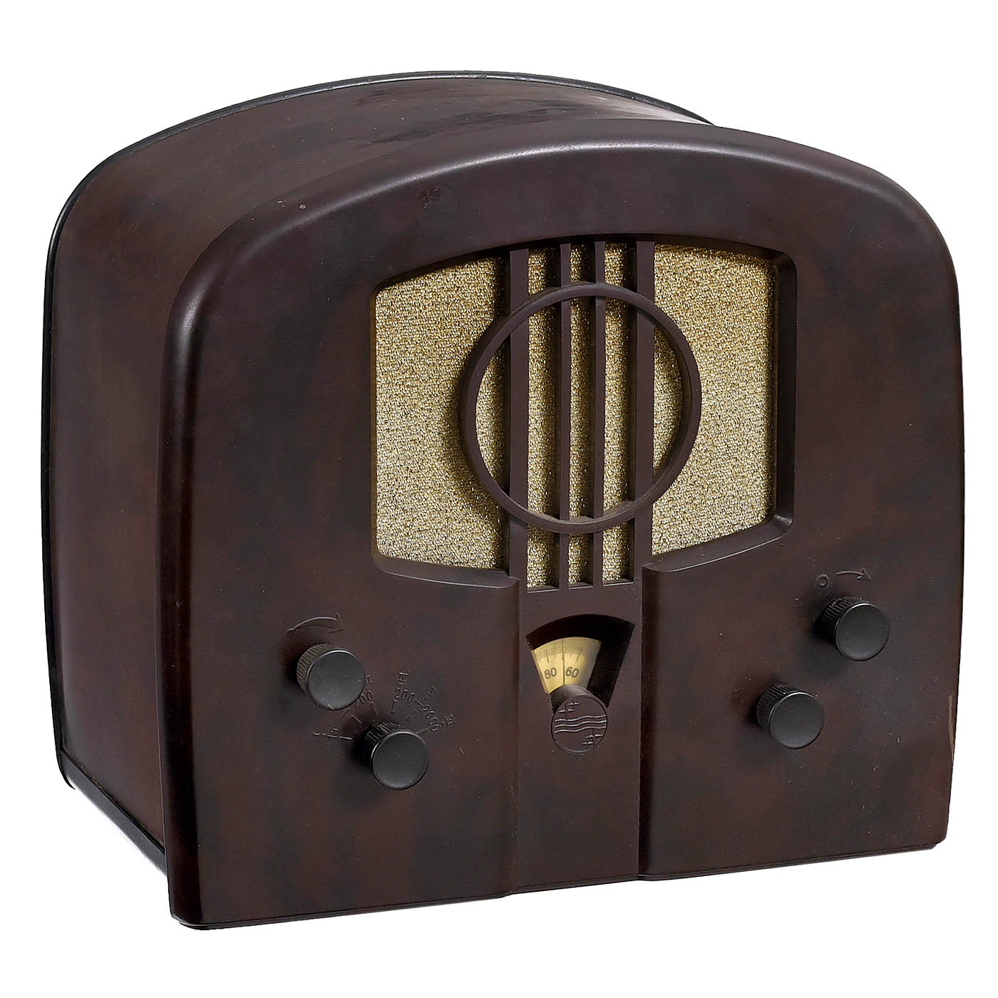 1) "Philips 938A", 1933, Netherlands, 4 tubes, long wave, medium wave and short wave, alternating current, dynamic loudspeaker, slight crack in the front. – 2) "Saba 311 WL", 1933, Villingen (Schwer & Söhne), Germany, 4 tubes, long wave and medium wave, 110–240 volts AC, dynamic loudspeaker, well-preserved case. – 3) "Ducretet-Thomson D 736", 1946, France, 6 tubes, long wave, medium wave and short wave, 110–240 volts AC, dynamic loudspeaker, well-preserved case. – And: 4) "Siera S 194 U", 1948, Belgium, 5 tubes, long wave, medium wave and short wave, all-current set 110–125 and 200–220 volts, Philips type 9726 loudspeaker. – All radios complete with tubes and rear panels.