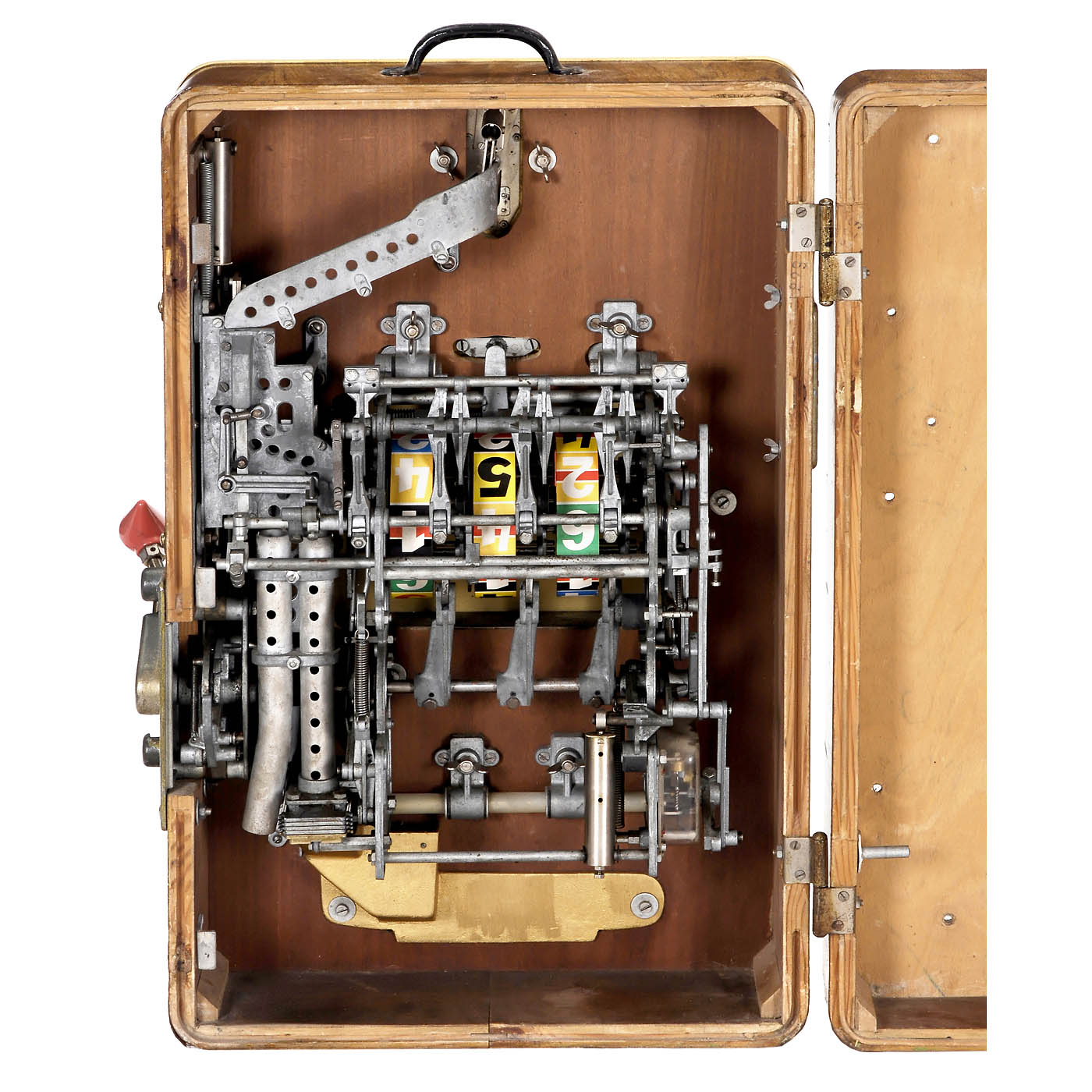 Günter Wulff, Berlin. Mechanical slot machine, lever-operated, set on freeplay, 3 reels, working, with key.