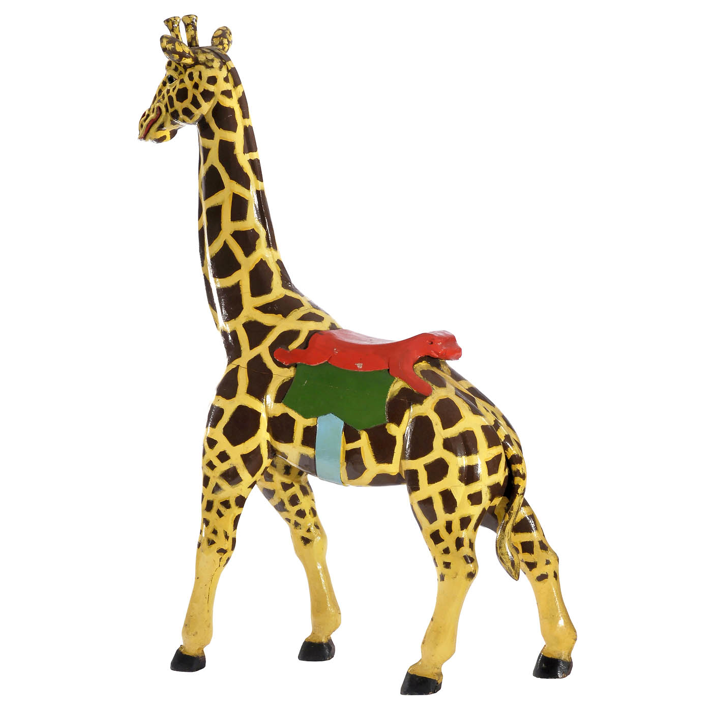 Carved and hand-painted wood, with very friendly face, height 68 ½ in. This figure has apparently never been mounted on a carousel. – For decorative or practical use.