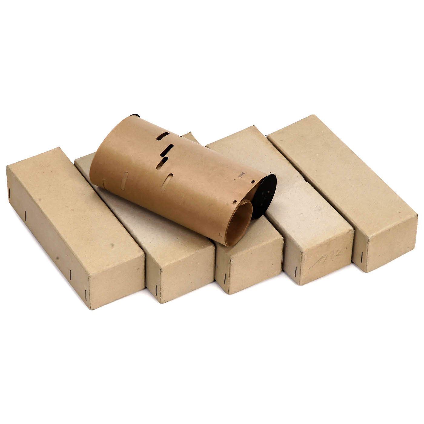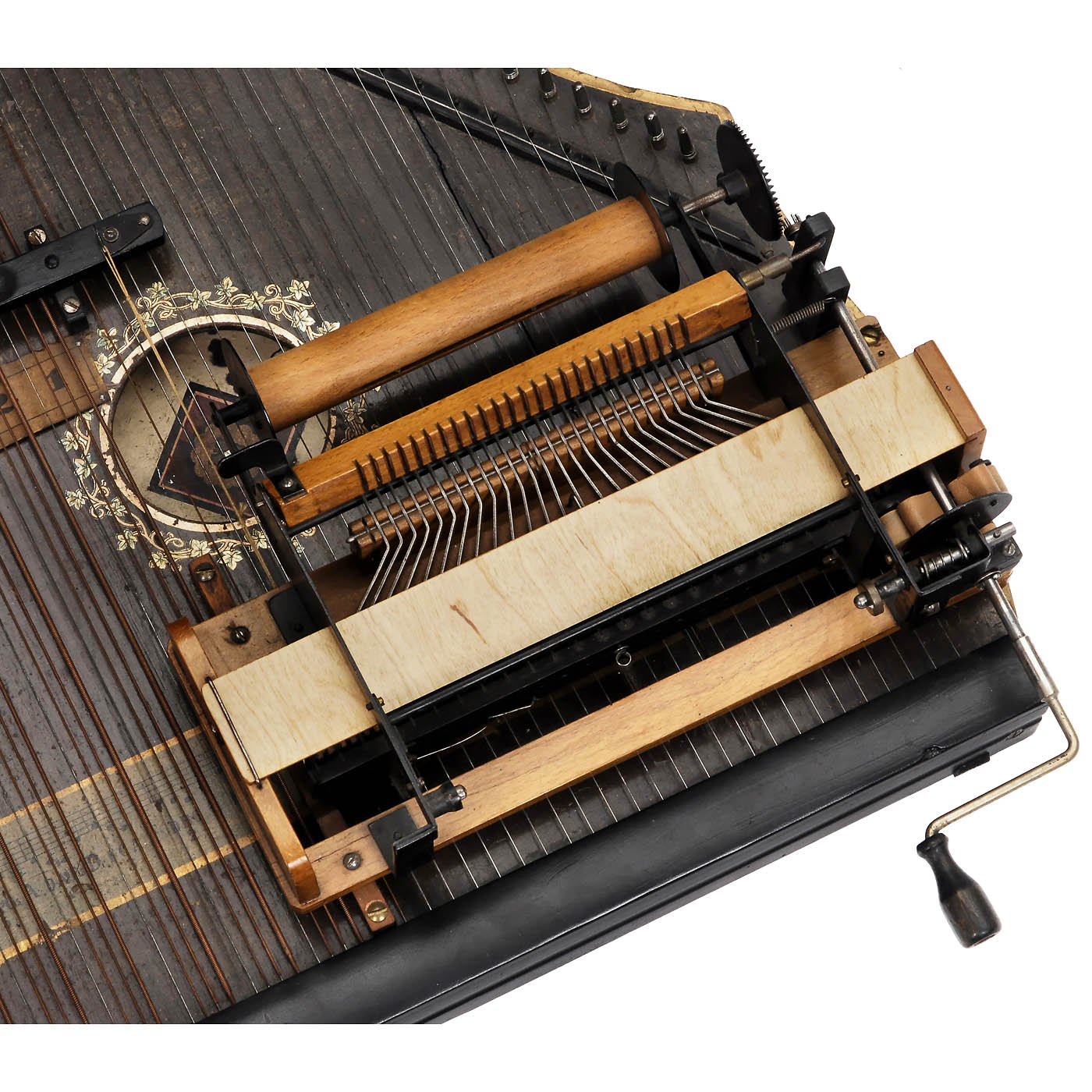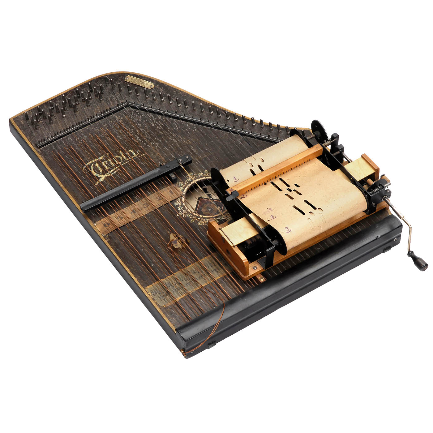Paul Riessner. For 25-note paper rolls, hand-turned mechanism with crank, bass notes played with the left hand (notes indicated on the roll 1–6), the right hand turning the crank, good working original condition, in need of tuning, with 6 rolls. – Literature: D. Bowers, "Encyclopedia of Automatic Musical Instruments", 1977, p. 356. – An unusual collector´s item!