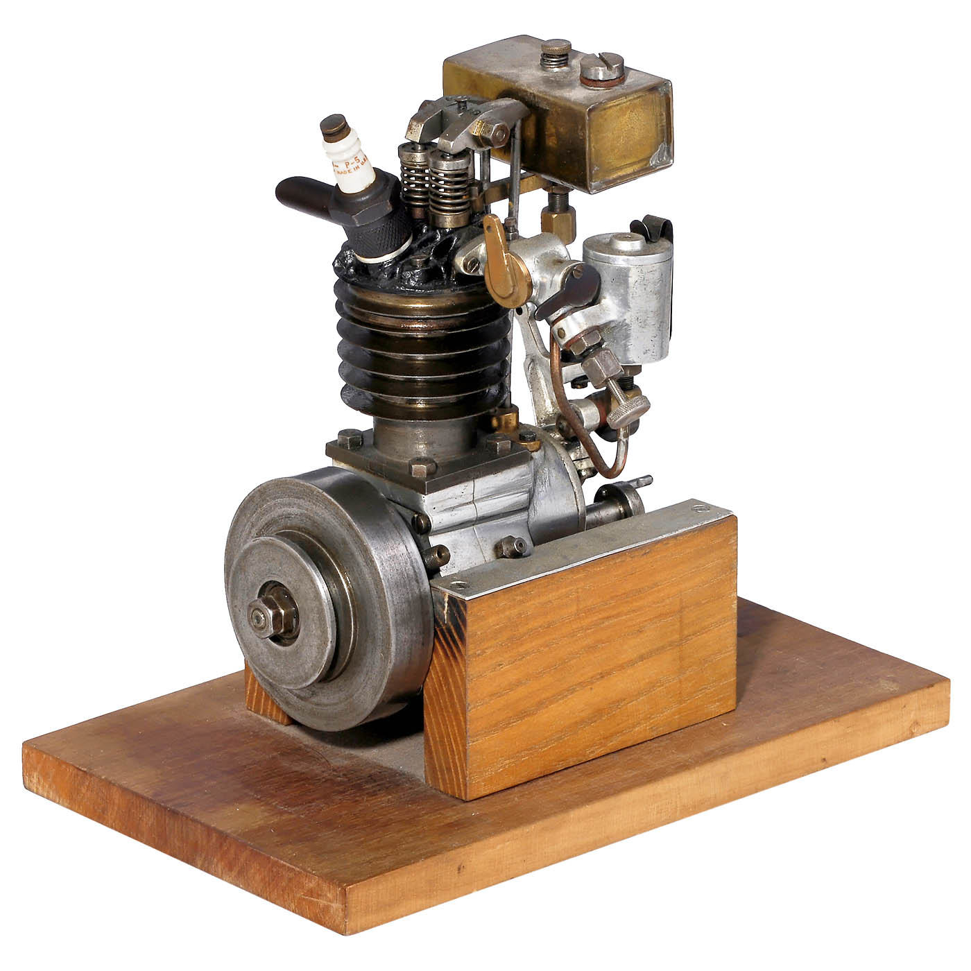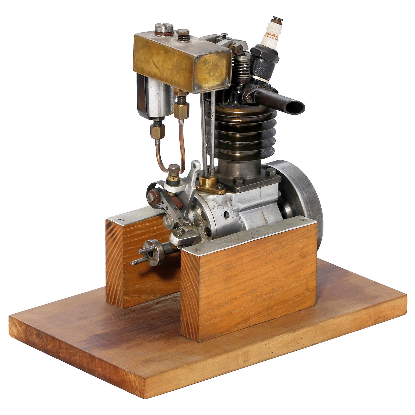 England, 10cc 4-stroke engine, for methanol or gasoline, brass tank, glow plug Champion P-5, aluminum casing, height 8 3/4 in.