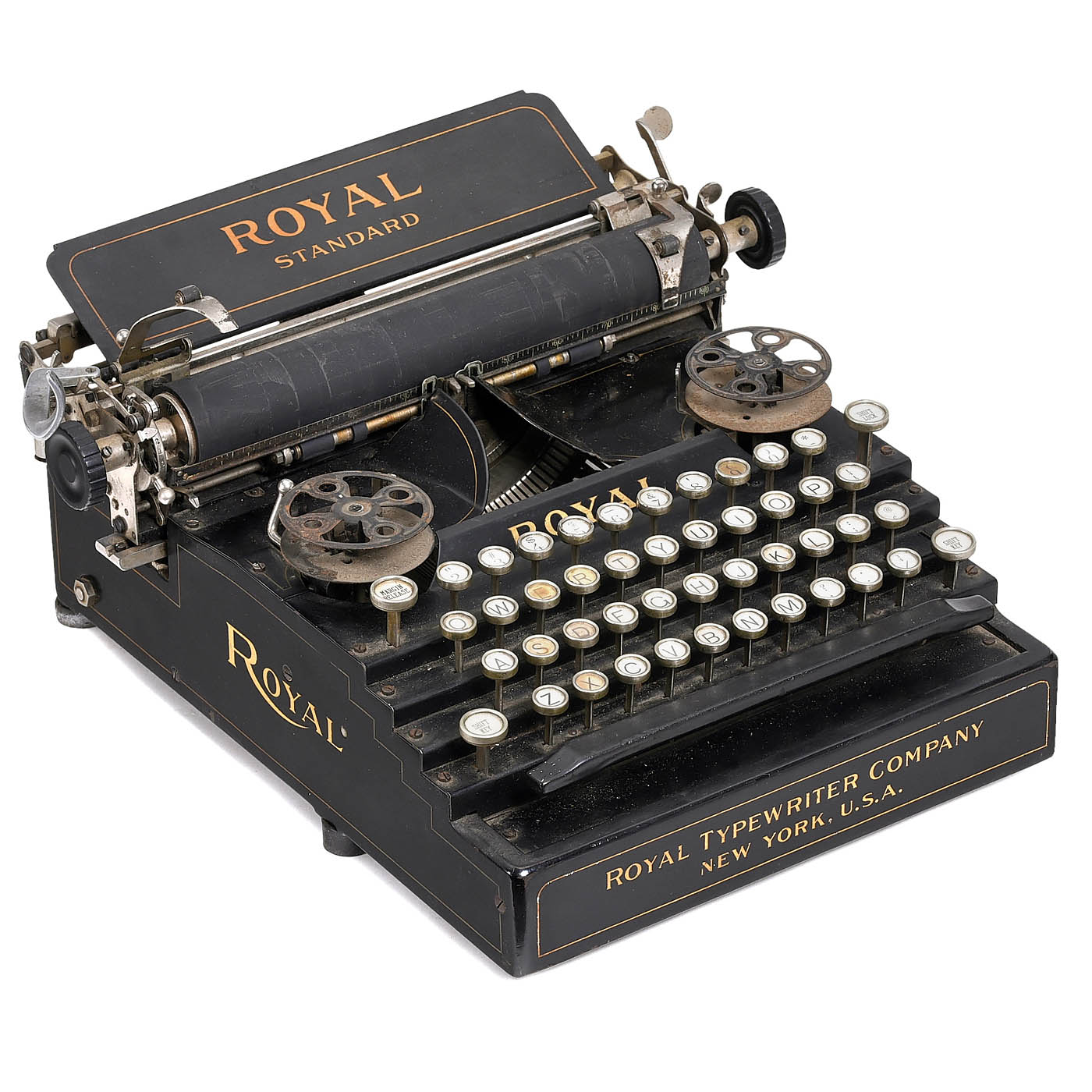 1) "Remington Standard No. 6", Wickoffs Seamans & Benedict, 1901, serial no. 75023, upstroke blindwriter, wood typebars, working. (3/3+) - 2) "Remington Standard No. 10", c. 1910, serial no. RC72790, the first 'visible writing' machine made by Remington, with tabulator, working. (3/3+) - 3) "Oliver No. 5", 1912, serial no. 343852, popular American frontstroke machine, working. (3+/3) - And: 4) "Royal Standard No. 1", c. 1909, serial no. 35834, 4-row flatbed frontstroke machine, works. (3/2-3)