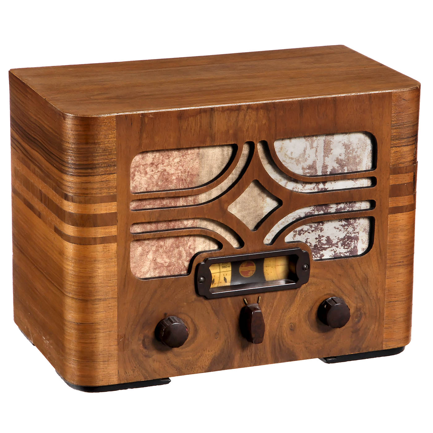 1) Model Arcolette 3, c. 1928, 3 tubes, long wave and medium wave, battery-operated, for external speakers, metal case, bakelite lid. - 2) Philips Octode Super type 521A, 1934, France, 6 tubes, mains operation, long wave and medium wave, dynamic loudspeaker, rear panel not complete, with tubes. - 3) Sachsenwerk Eswe 3W, c. 1931, 4 tubes, long wave and medium wave, mains operation, for external loudspeaker, wood case, complete with tubes and rear panel. - 4) Concerton U 12, 1934, Stern & Stern, Sweden, 3 tubes, mains operation, dynamic loudspeaker, wood case, complete with tubes and rear panel. - And: 5) Siemens 31 GS, c. 1930, Siemens & Halske, Berlin, 3 tubes, mains operation, long wave and medium wave, for headphones, complete with tubes and rear panel.