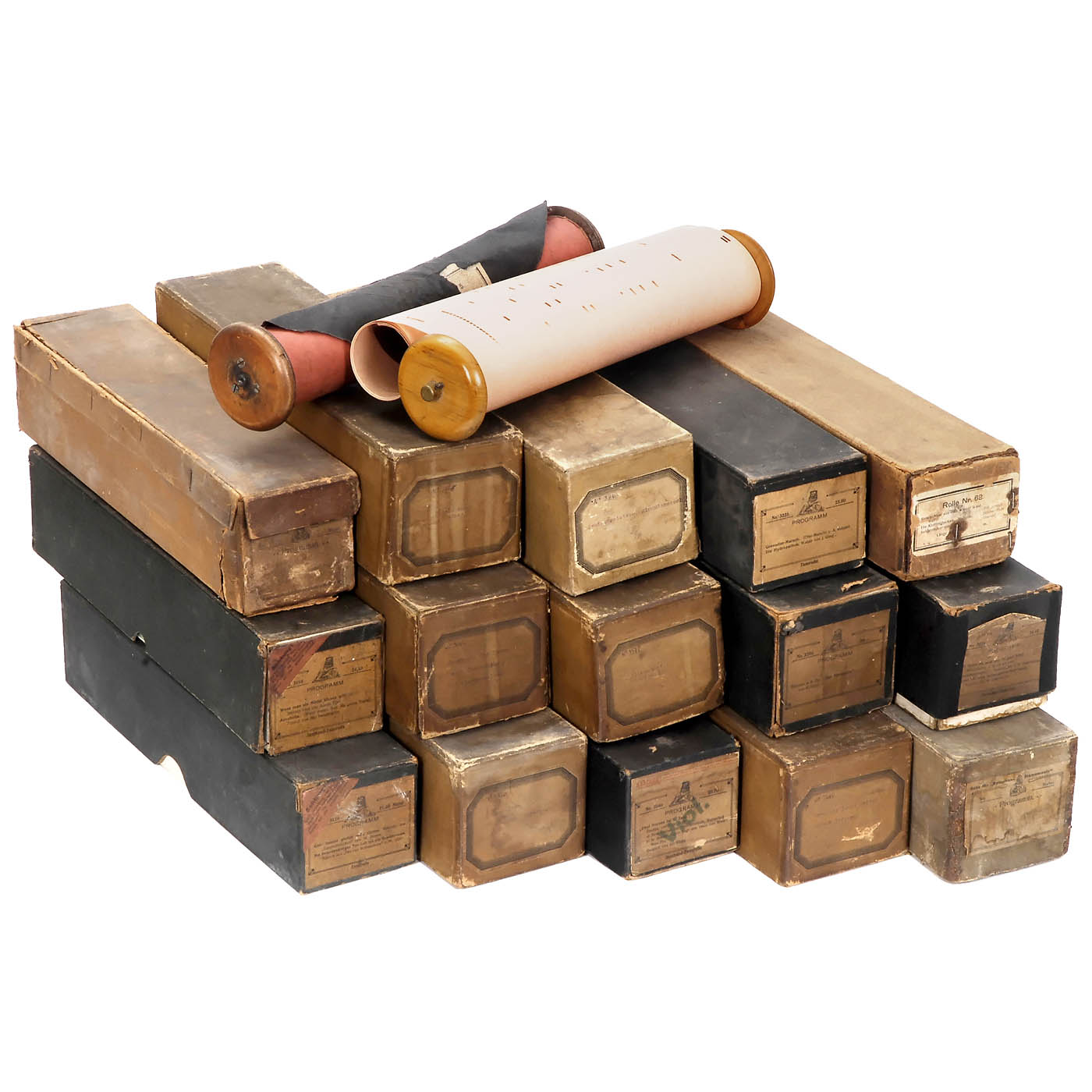 Popper & Co., Leipzig. Serial rolls with 1 to 3 titles each, jazz band dance rolls and 1 violin roll. - In addition: 3 rolls with damaged coils.
