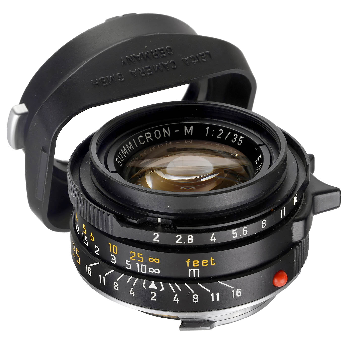 Leitz, Wetzlar, No. 3485583, fourth version, with original lens hood 12524, glass clean under point light, good condition. The "dream lens" of the M-system!
