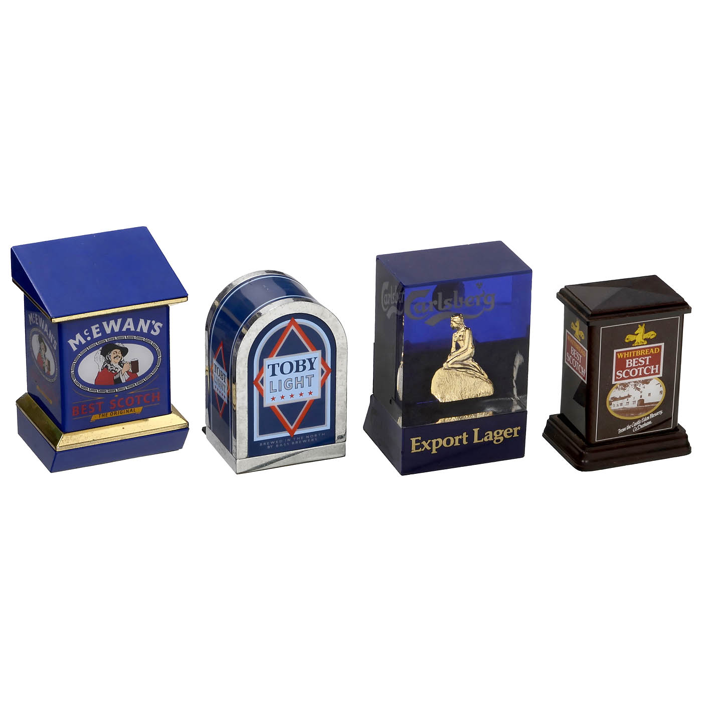 Heineken Lager Beer, Bentley's Yorkshire Bitter, Vaux Bitter, Mansfield Dark Mild, McEwans Lager, Carlsberg Lager, McEwans Best Scotch, Whitbread Best Scotch, Heineken Lager Beer, Newcastle Exhibition, Toby Light and Carlsberg Export Lager. – All untested and apart from Carlsberg Export Lager sign all with cables and plugs.