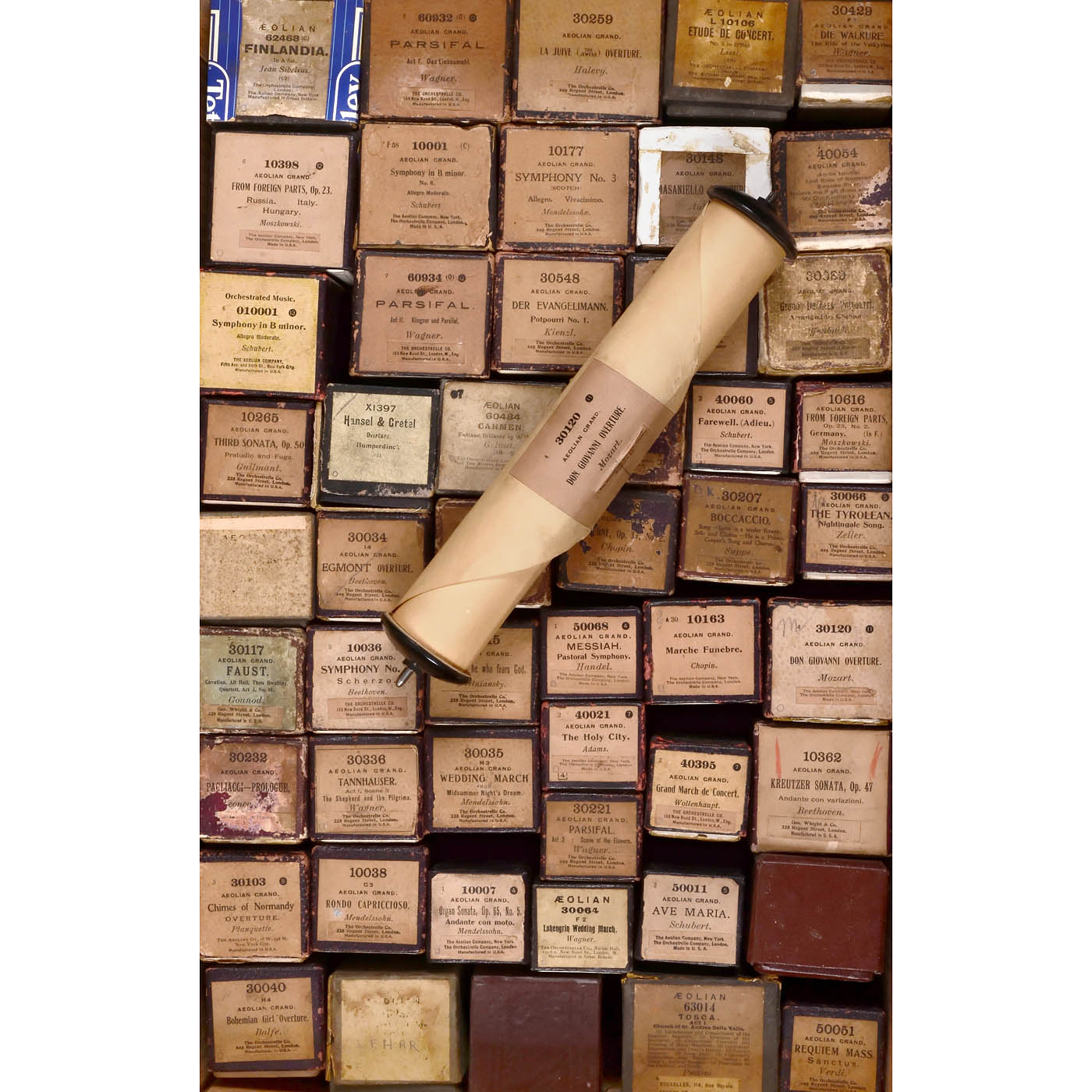 Original rolls by Aeolian Company and some re-cuts, in various genres, predominantly classical, mostly in original boxes, signs of wear to boxes, rolls not tested.