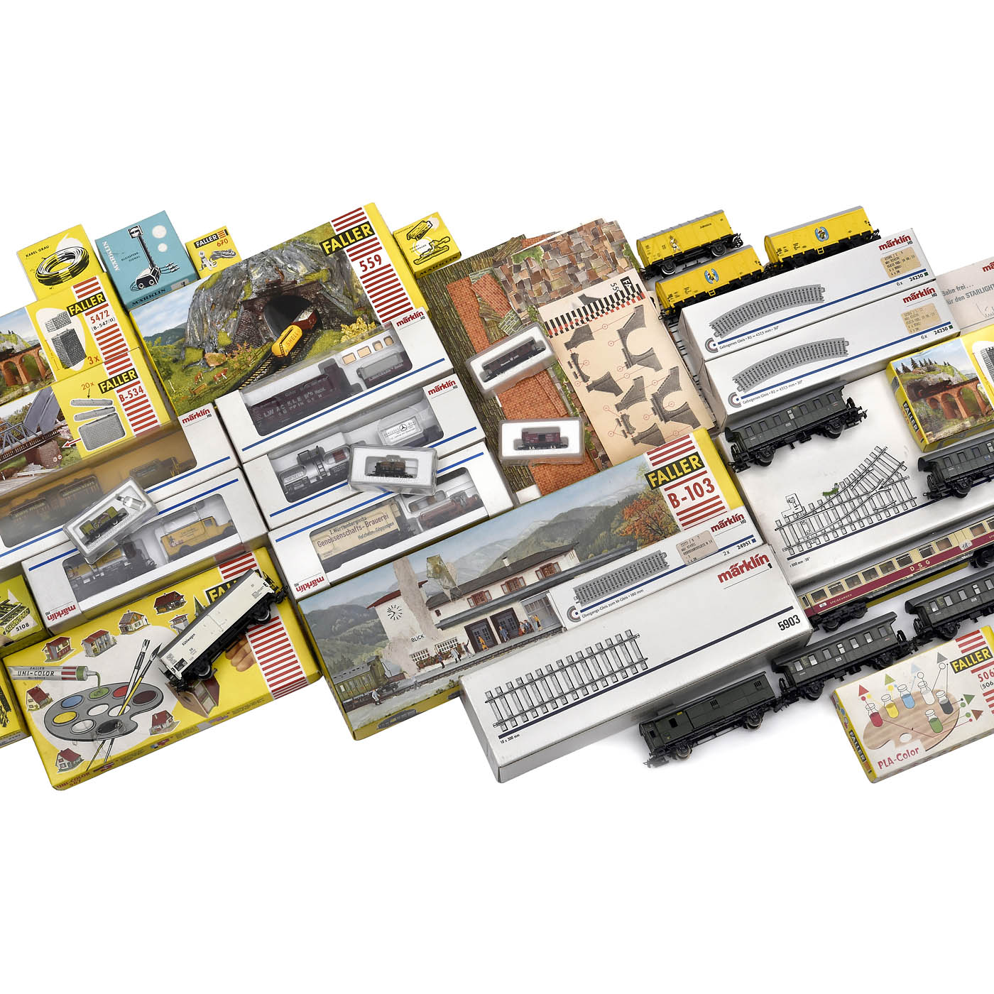 1) Märklin H0 2995 Delta starter set with steam locomotive BR 41001. – 2) 2 x Faller H0 – B-180 – covered platform, mint in box. – 3) 4 transformers, 3 x 6177 and 1 x 6210, in boxes. – 4) 14 Märklin Museum sets, 1991 to 2004, mint in boxes. – 5) 41072 H0 passenger car Ludwig II Musical in box. – 6) 4 museum cars 1987 to 1990 in boxes. – 7) Märklin H0 44524 glass tank car Malteser Aquavit in box. – 8) 6 Märklin H0 passenger cars in box. – 9) 8 Märklin H0 freight cars in boxes. – 10) 3 H0 tender locomotives in boxes, Märklin no. 3031, Primex no. 3196 and Märklin no. 3087. – 11) Märklin Z special model caboose wagon Starlight Express and 4 museum wagons. – 12) Märklin H0, 18 turnouts and approx. 200 rails, including C-track supplementary pack 24902. – 13) Märklin H0, 9 signals, 8 lamps, 14 switchboards, sidings and other parts. – 14) Märklin Maxi gauge 1 – 5440, Delta Digital set, in box with additional turnout and rails. – And: 15) Catalogs, books, houses and wagons by various manufacturers.