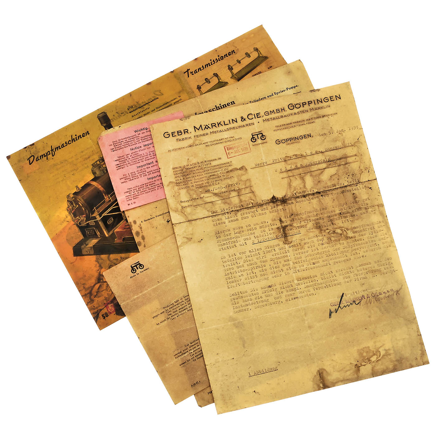 Large horizontal steam engine with dynamo no. 3391/1 and switchboard no. 3632, ABC brass flame-tube boiler, Ø 3 ½ in., double-flame spirit gas burner (slight repair at the filler plug), weighted safety valve, steam whistle, manometer, water level glass, water drain cock, feed pump, double-acting cylinder with slide control, total height with chimney 18 ½ in., base dimensions 16 x 17 ½ in. – First-class original condition with minor signs of play-wear. The original paintwork is glossy and not faded. Included are the original wood box, the instruction manual and a Märklin letter from 1939.