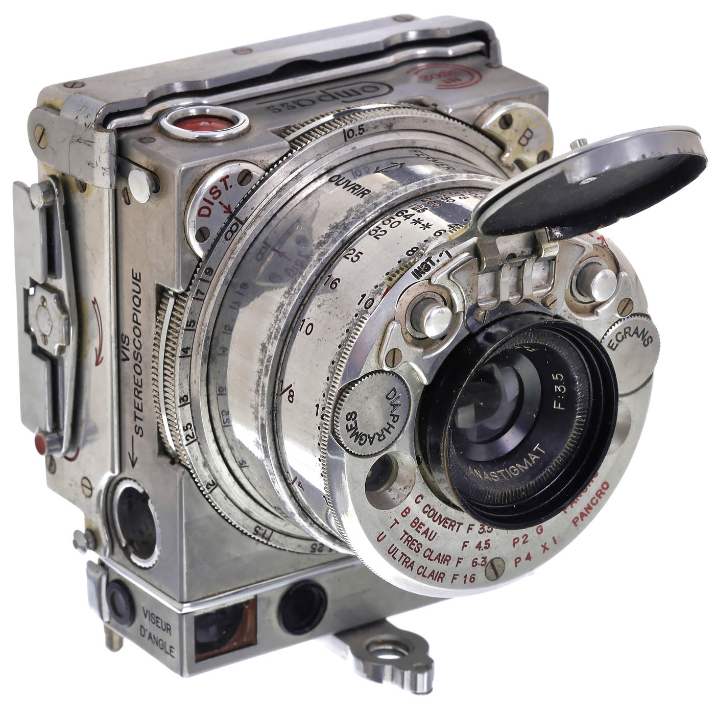 Le Coultre Cie, Switzerland. No. 3902, Anastigmat 3.5/35 mm, meter scale, French inscription, coupled rangefinder only faintly discernible, angle-finder, optical light meter, rare rollfilm back and original case, shutter working very slowly at slow speeds. Accompanying the camera are large-format German brochure "Der erste schweizerische Photo-Apparat" ("The First Swiss Photo Apparatus"), German manual with 40 pages and correspondence with Jaeger-LeCoultre 1948-1951 concerning discontinuation of the camera and remainders, this piece for 435 sFr. - In addition: Book Jaeger-LeCoultre, "Das Buch der Manufaktur", 1995/96, 214 pages (Compass mentioned on p. 17). - Rare documentary material.