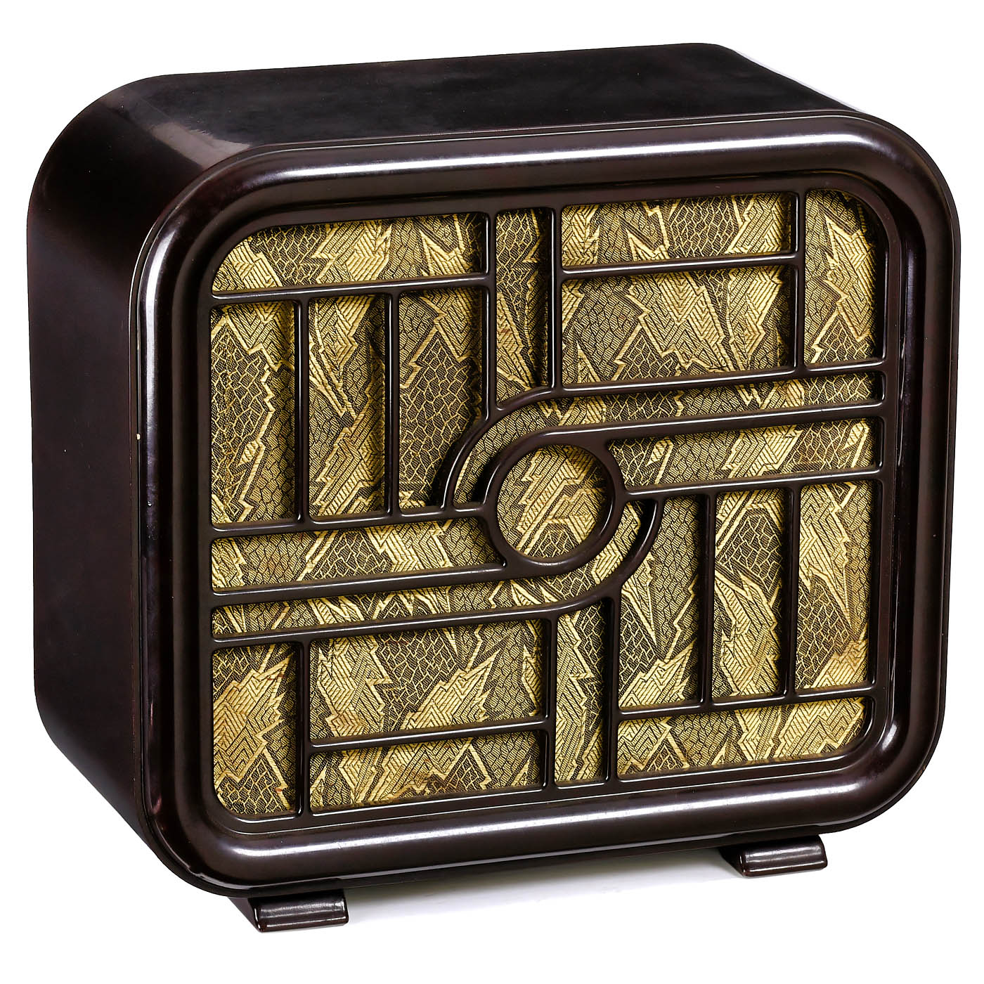1) Triovox-Radio, model B, France, wood case. - 2) Amplion Cabinette, Alfred Graham & Co. (Algraphone), London, horn loudspeaker in oak cabinet. - 3) Mende, System Günther, Radio H. Mende & Co. GmbH, Dresden, wood case. - 4) Grawor Mignon, Grass & Worff, Berlin, wood case. - 5) Philips model 2019, Netherlands, heptagonal bakelite case with brass front, two-pole connecting cable, Ø 11 ¾ in. - 6) Grawor Violon, Grass & Worff, Berlin, wood case. - 7) Conus loudspeaker EB71, Loewe-Opta, Germany, magnetic system, wood case, without cloth covering. - 8) Telefunken Arcophon 8, Germany, magnetic system, wood case. - And: 9) Hagenuk Farrand-Inductor, Neufeldt & Kuhnke, Nordmark, inductor-dynamic loudspeaker, bakelite case.
