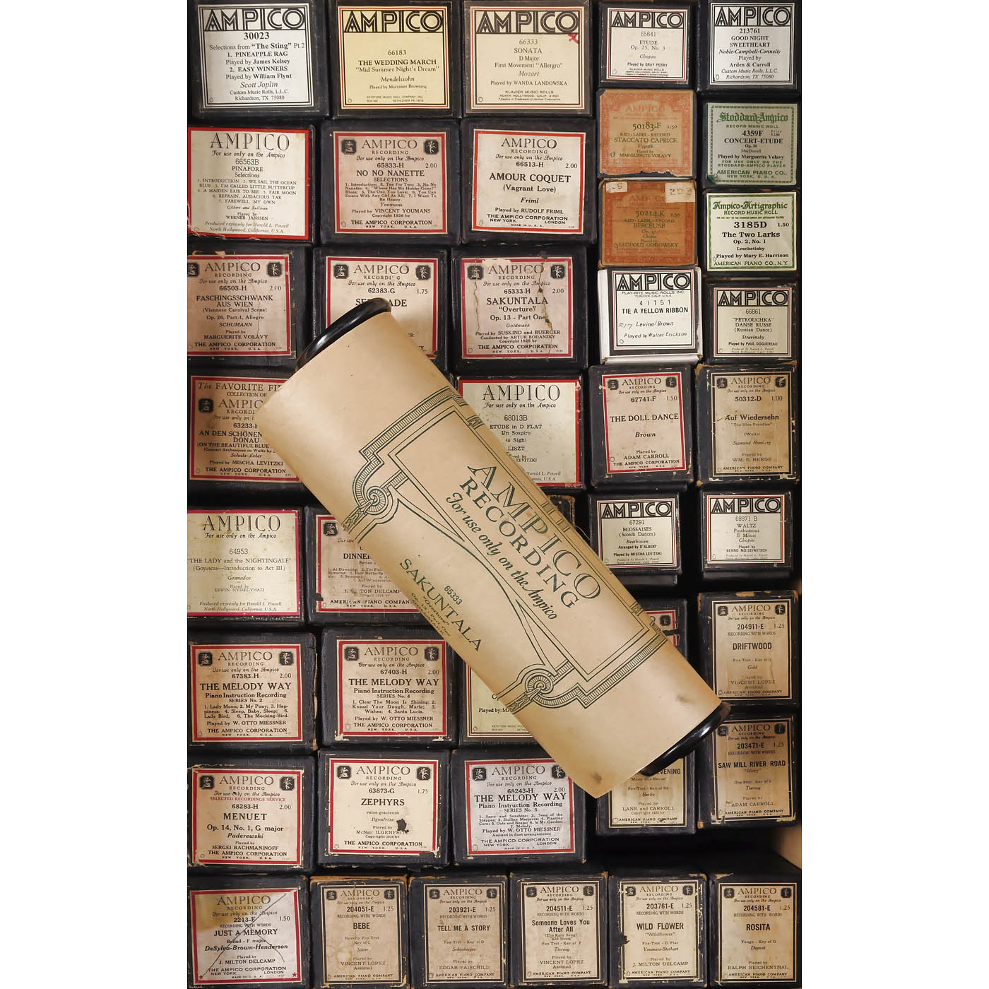 Original rolls by Ampico Corporation and re-cuts by Keystone, Automatic Music Roll Co. and others, various genres, predominantly classical, mostly in original boxes, minor wear to boxes, rolls in good condition.