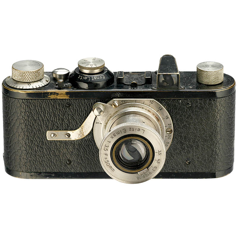 Leitz, Wetzlar. 据Ottmar Michaely 鉴定: 这是一台配备了Elmax 镜头的Leica I(A)相机 : 含5片镜片, 原装机身盖, 带序列号, 平视取景器等等, 部分部件更换过. 漂亮的古董相机!