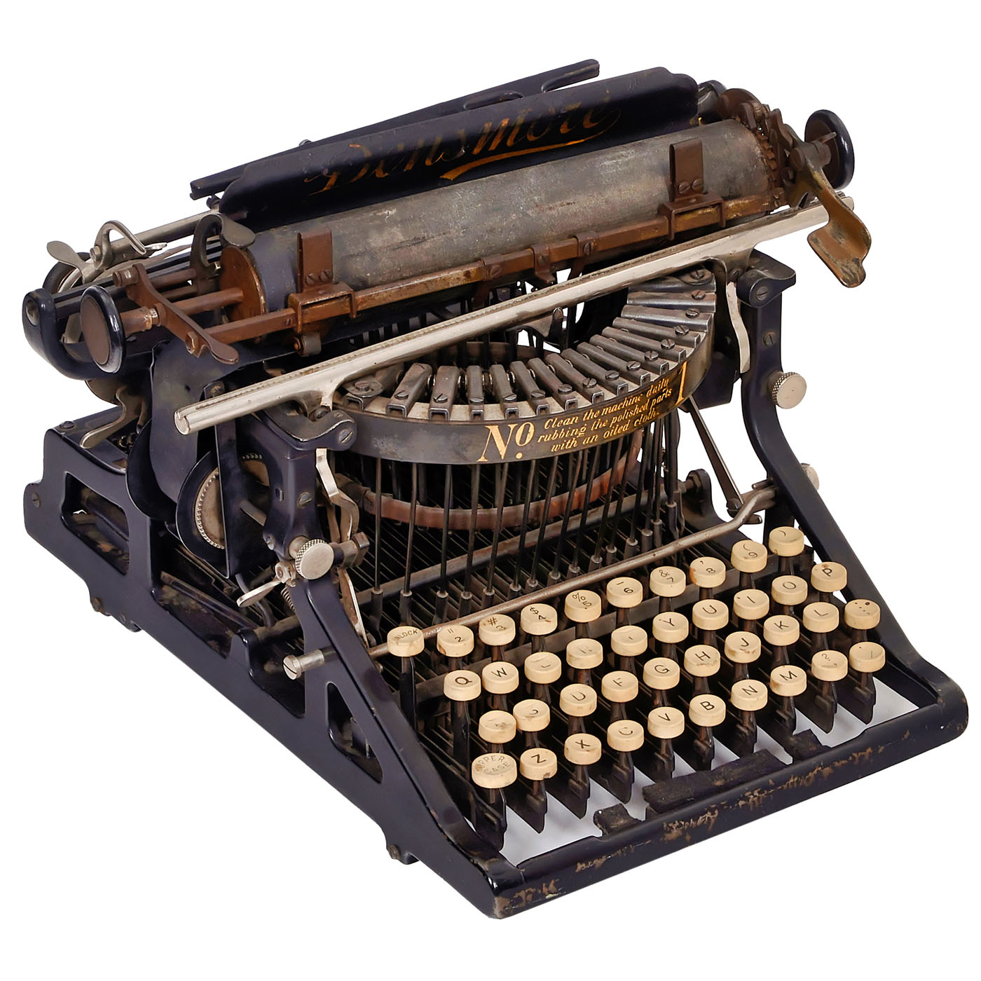 The Merritt Manufacturing Company. No. 11227, upstroke typebar arrangements with 38-key keyboards, missing space key, carriage loose, probably missing some parts. - Literature: Martin, 1949, p. 125. - With Model Shop tag from another Densmore typewriter and some spare parts.