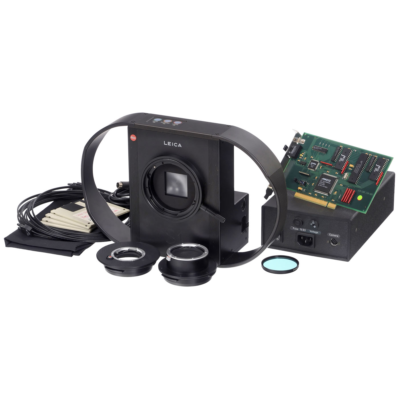 Leica Camera AG, Germany. Comprising: S1 No. 2286048 with cap, S-Adapter-M 15310 with box, S-Adapter-R, Leica E55 IRa filter 13600, PCI-Board (for PC up to WIN 2000, probably XP and MAC up to OS 9.2.2), 6 m fiber-optic cable, Leica Power Supply Leica S1 EDCR 27.5, power cord, connection cord, 4 software diskettes (one with original camera number, one with handwritten note: "Leica-S1-Silverfast Plug-In for Photoshop MAC 29.1.90", the other two marked as Beta-version 1/2 and 2/2), without instructions, in good condition, electrical functions not tested, with original box and a dark cloth for monitor viewing. Note: Order no. 10600 was priced at 16,800 € in 2006. An unusual design, the most avant-garde Leica of its time.