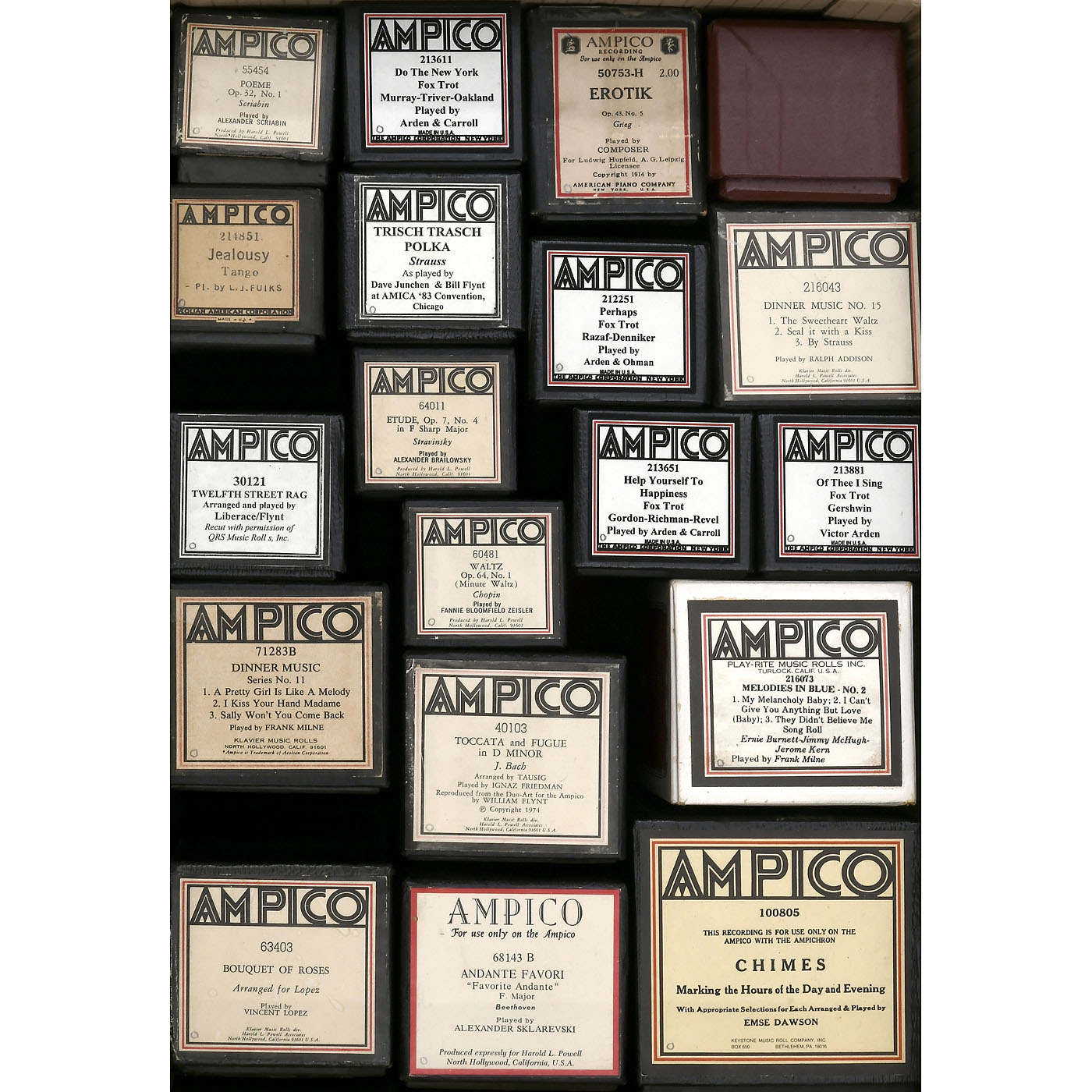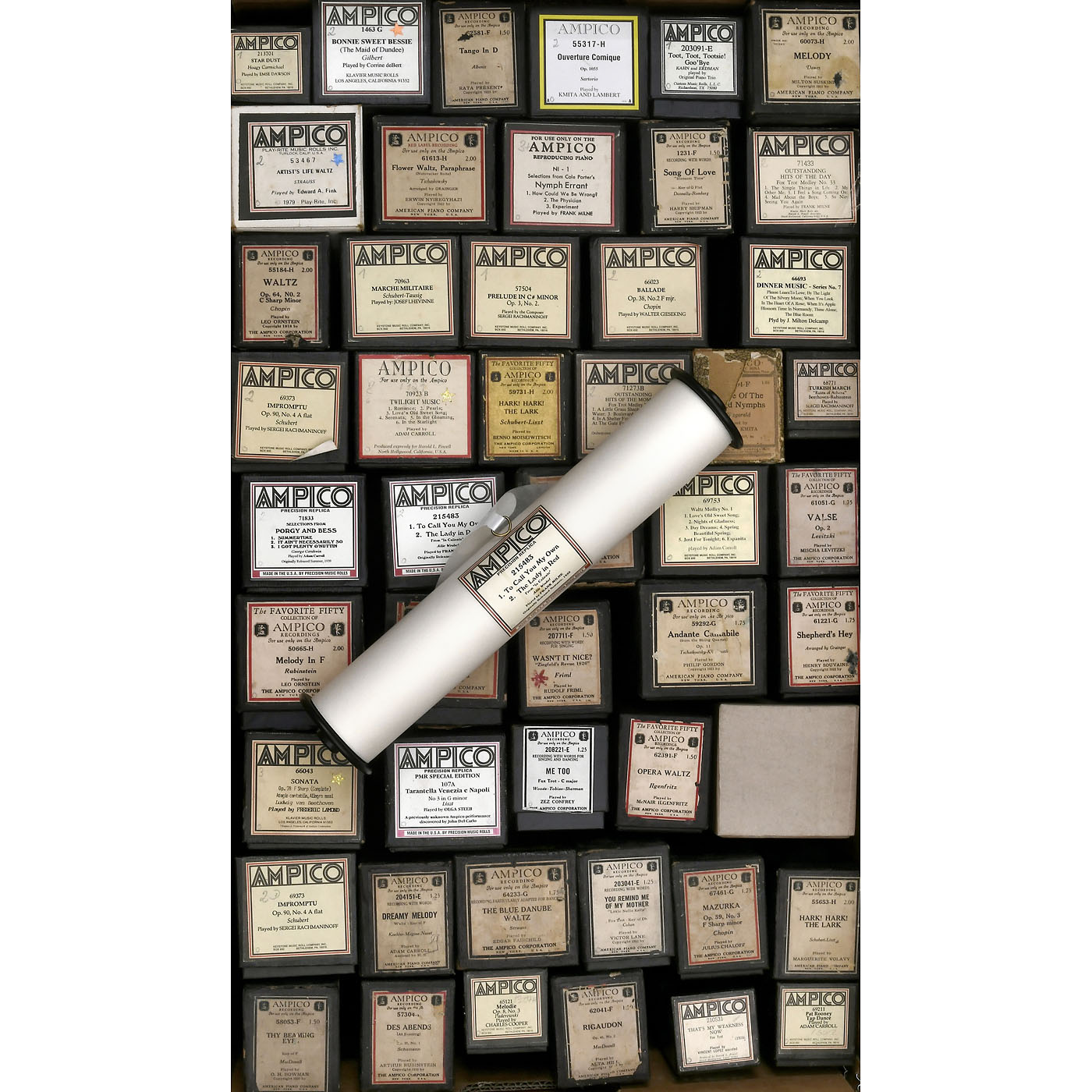 Original rolls by Ampico Corporation and re-cuts by Automatic Music Roll Co. and others, in various genres, predominantly classical, most in their original boxes. Condition: minor signs of wear to boxes, rolls mostly in good condition.