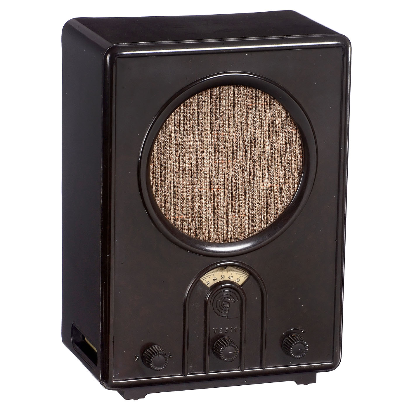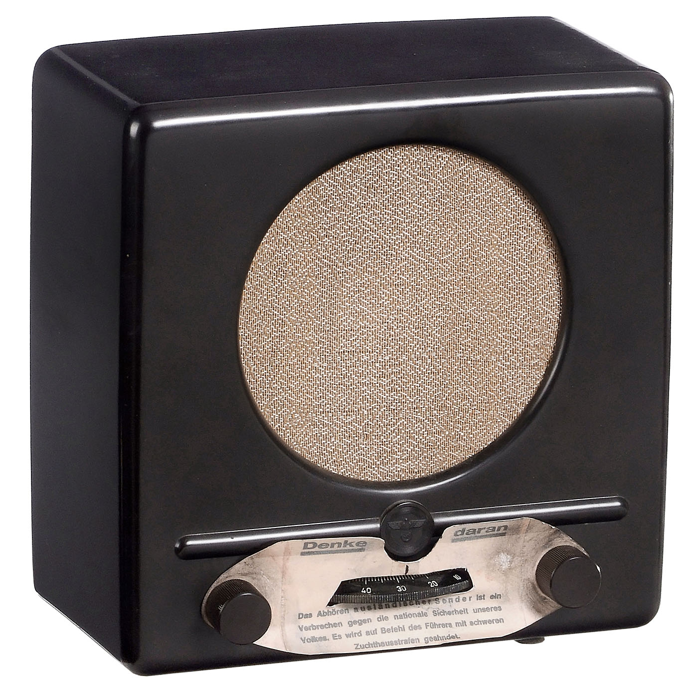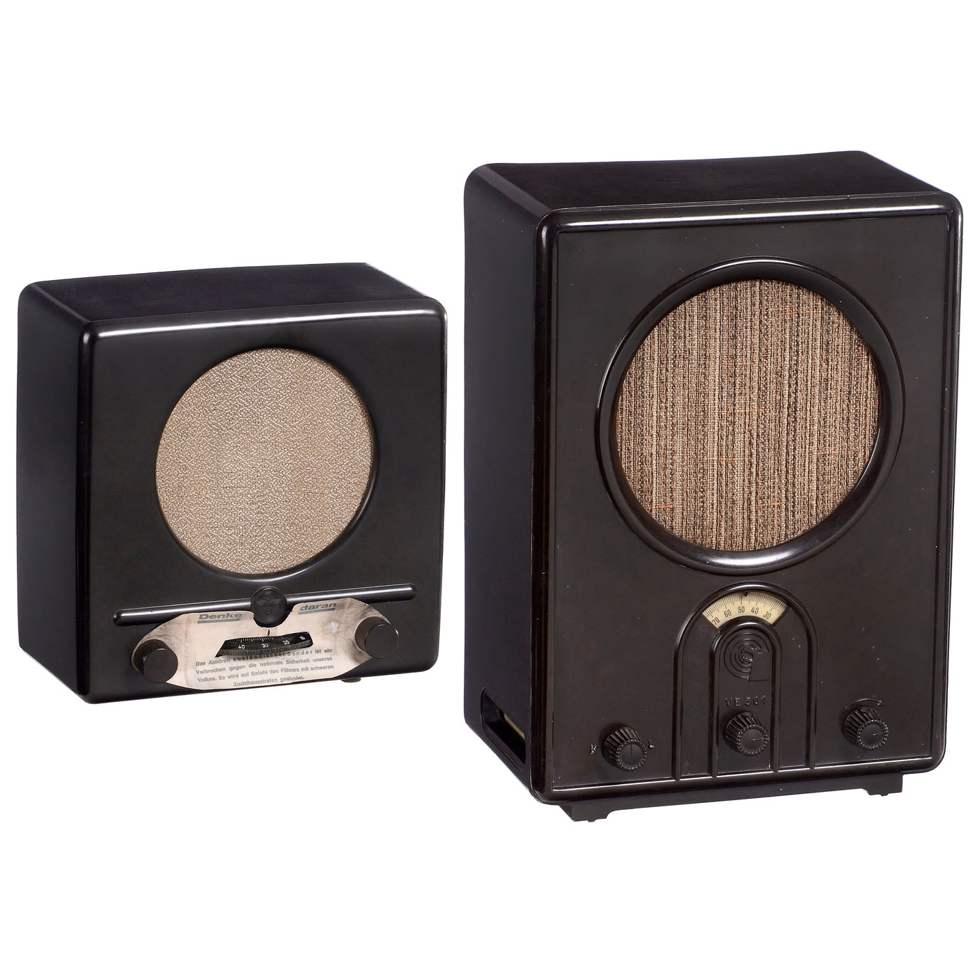 1) Deutscher Kleinempfänger DKE38, Radio Mende, 2 tubes, bakelite case with insignia on the front, works. - And: 2) VE 301 W (alternating current), Lange-Radio, 3 tubes, bakelite case, works. - Bakelite cases in good condition, complete, with original rear panels.