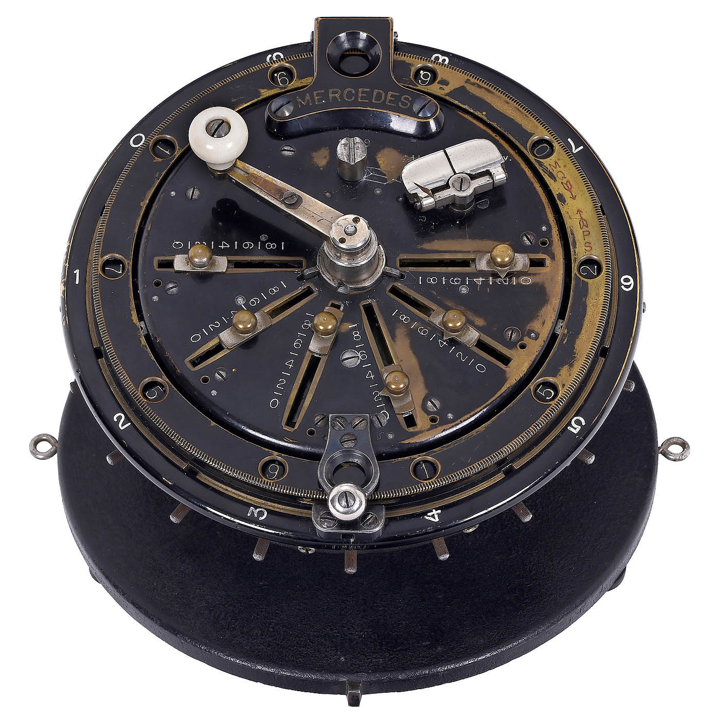 Low serial no. 1619, Mercedes-Bureau-Maschinen Ges. mbH, Berlin, S.W. 68, German patent 194527 from 23 March 1905, stepped-disc calculating machine for all four basic arithmetic operations, with indirect subtraction, switch for addition/subtraction sticks, otherwise in working condition. - Note: This rare machine was designed by the renowned engineer Christel Hamann of Berlin and named after the prodigious German mathematician, Carl Friedrich Gauss. The model appears here for only the third time at auction.
