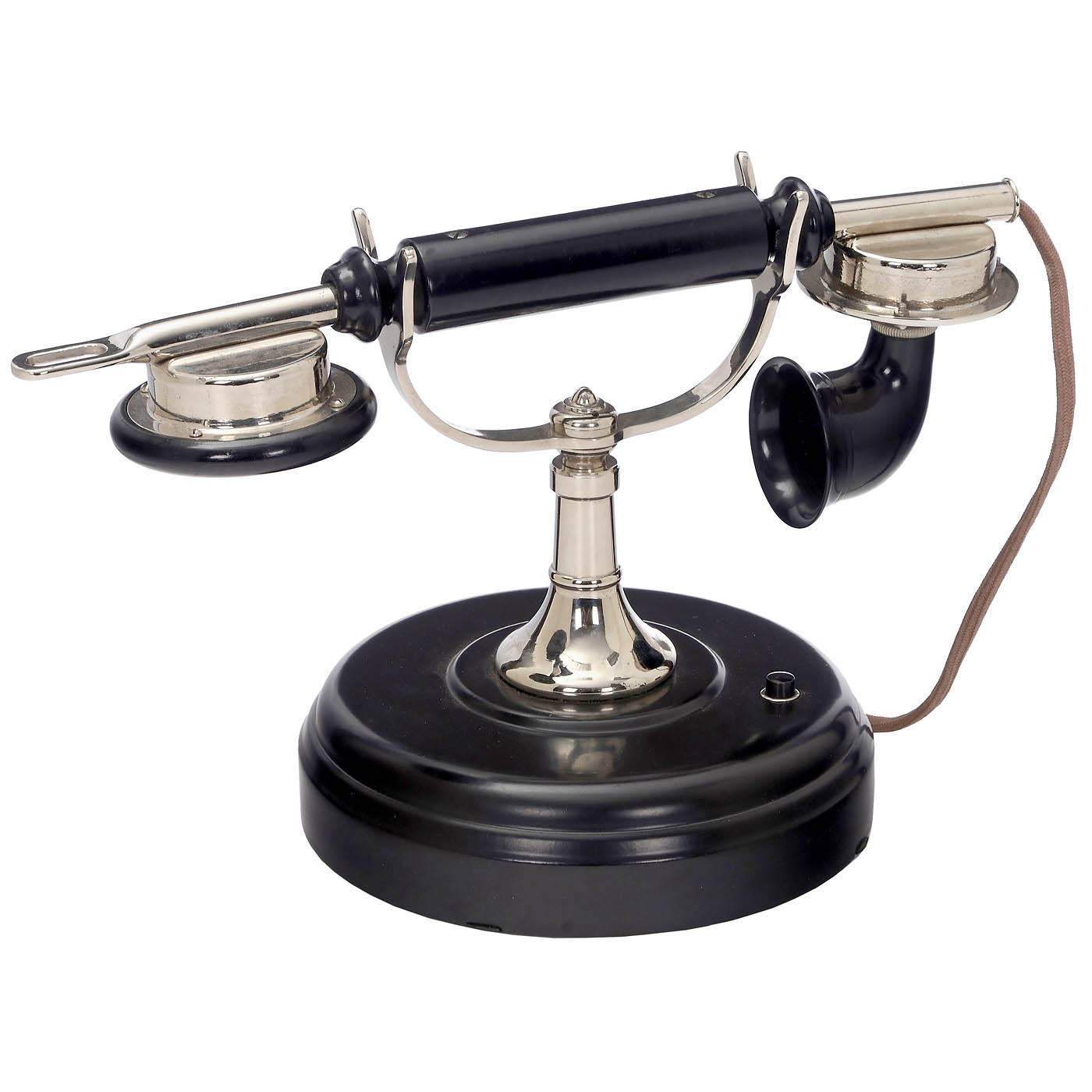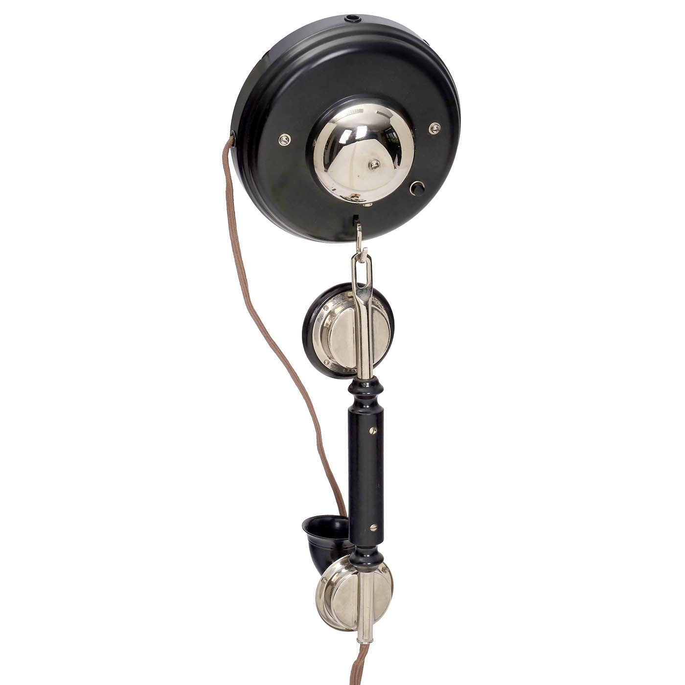 Bell Telephone Manufacturing Company, Antwerp. A wall-mounted and a desk telephone, with metal cases and handsets with speaking horns. - Provenance: The telephones were discovered in the warehouse of an old Antwerp electrical shop; the devices are in unconnected and unused original condition.