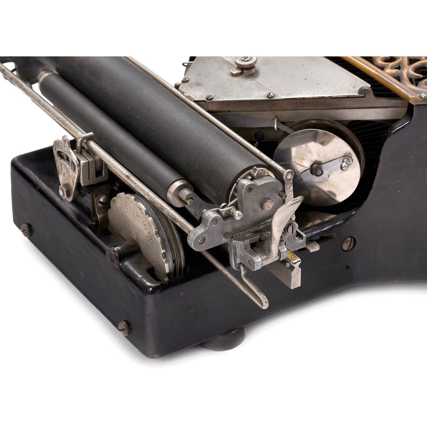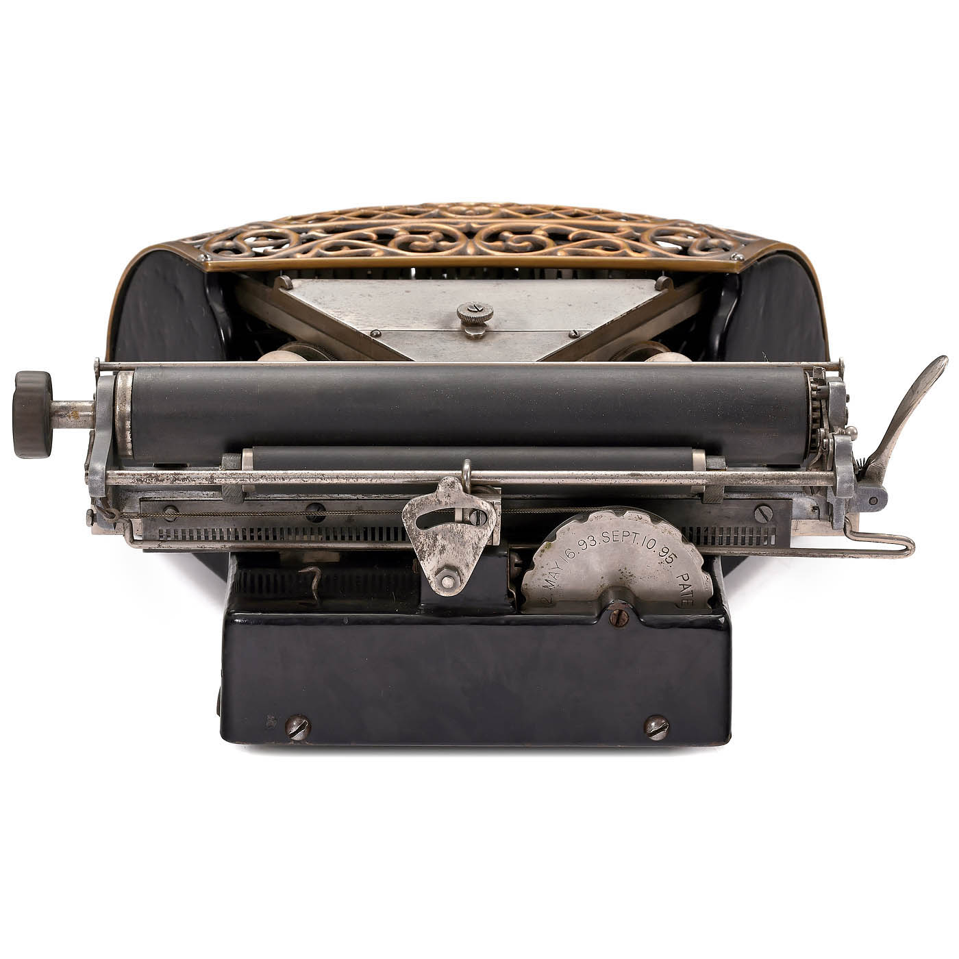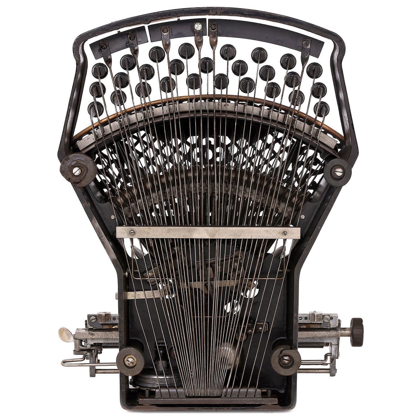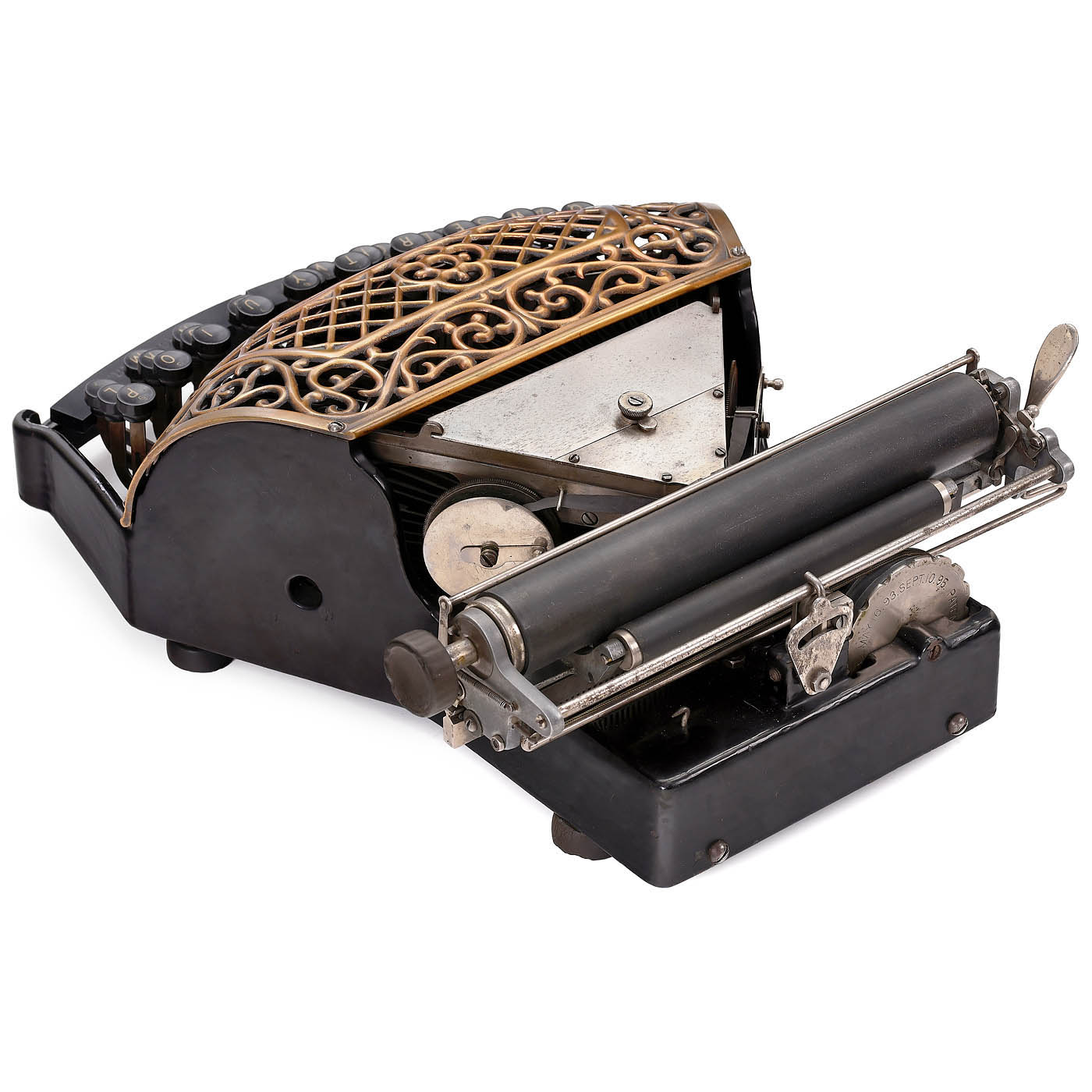 Ford Typewriter Company, New York, low serial no. 417, thrust-action three-bank double-shift ribbon typewriter with beautifully decorated copper-plated type-bar cover, black-enameled cast-iron frame and aluminum carriage. - Literature: P. Lippman, "American Typewriters", 1991, p. 83; Martin, 1949, p. 143. - A fine collector's item and exhibition piece in fully-working original condition.