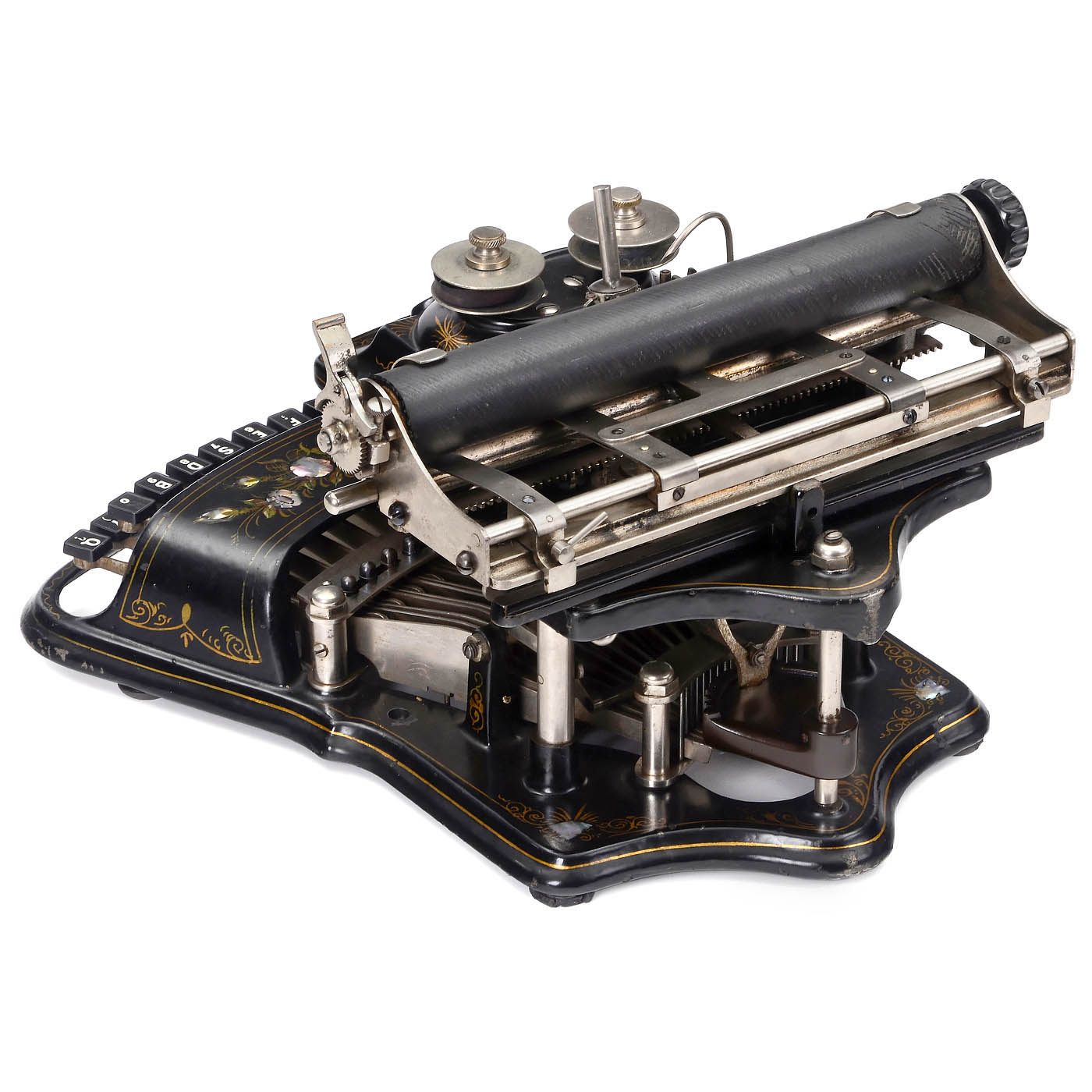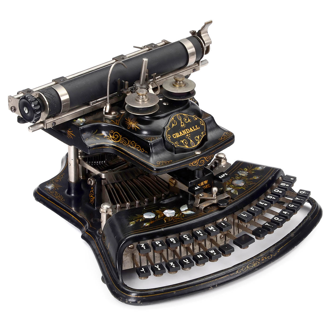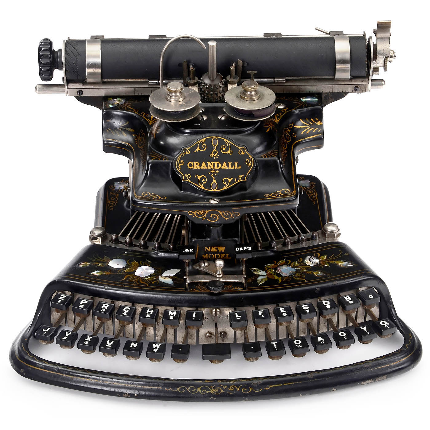The Crandall Type Writer Co., Syracuse, N.Y. Serial no. 5124, with vertical typesleeve and curved two-row keyboard, one of the most attractive typewriters with its mother-of-pearl and gilt decoration, in excellent original working condition. - A superb pioneer of office communication, collector's item and museum piece.