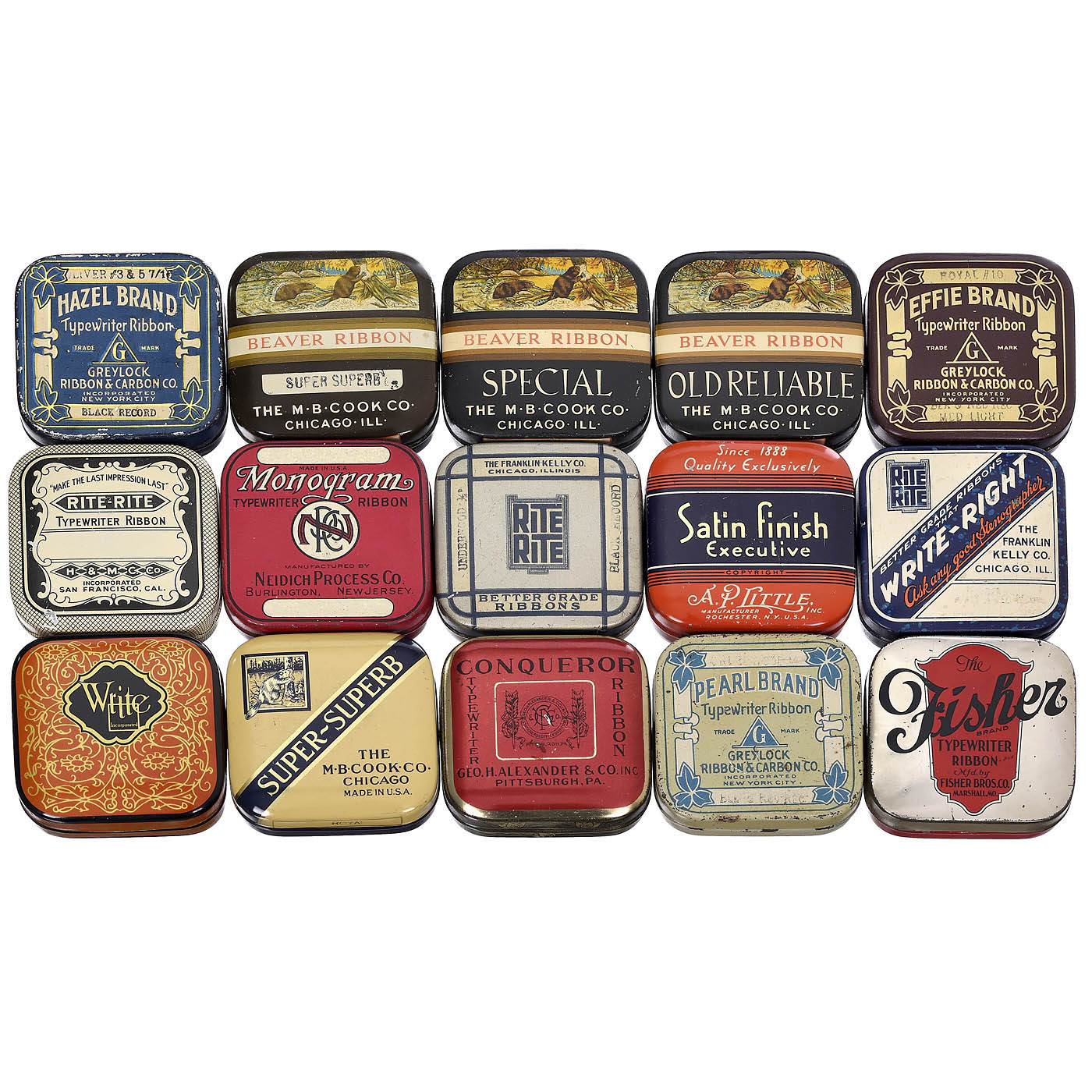 15 Typewriter Ink Ribbon Tins