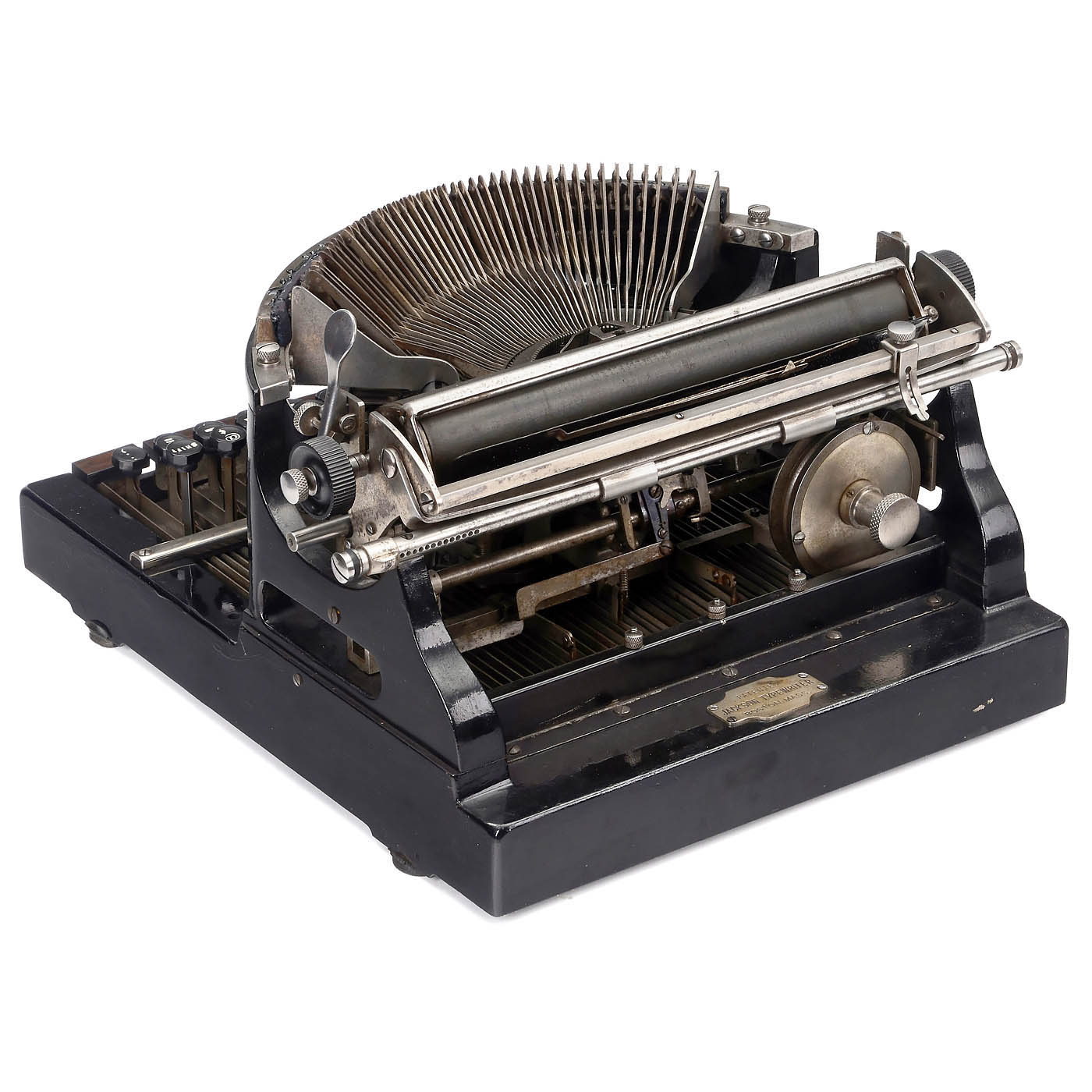 Joseph Hassel Jackson. Serial no. 653, American "Grasshopper-action" typewriter with nickel-plated maker's plaque: "Patented Jackson Typewriter, Boston, Mass.", very attractive decoration, complete and fully working. - Literature: P. Lippman, 1991, p. 110 and https://site.xavier.edu/polt/typewriters/ jackson.html. - A rare machine, one of few units produced.