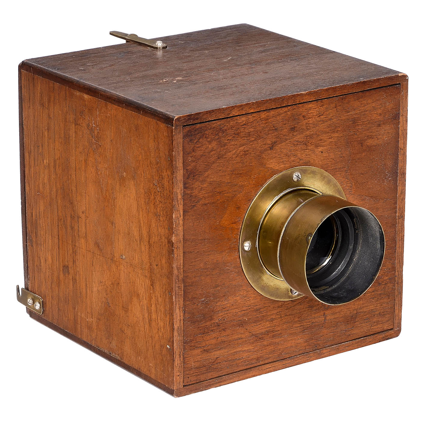 1) Box-form camera obscura (17 x 16 x 17 cm) from a collection of teaching materials, with folding back wall with round screen 10 cm Ø, bright brass-bound 3.4 / 15 cm lens (similar to the Petzval-type) in sliding mount, set up for a Waterhouse stop, interior with two Waterhouse stops kept in stock. A good demonstration object for children. - 2) French Camera Lucida, c. 1880, brass instrument for accurate perspective drawing. - And: 3) Chromatrope, 11.2 x 17.8 cm, with smooth crank operation, in good condition.