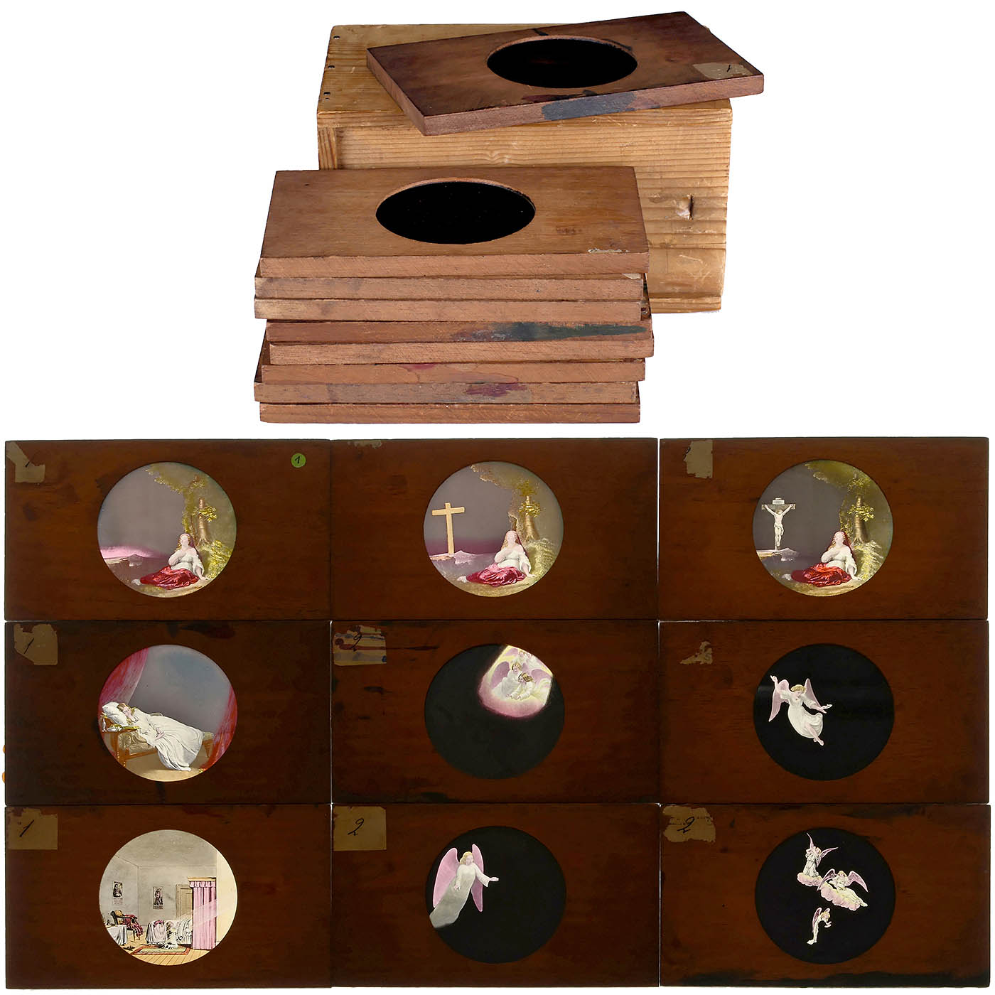 9 English Dissolving Magic Lantern Slides, c. 1890