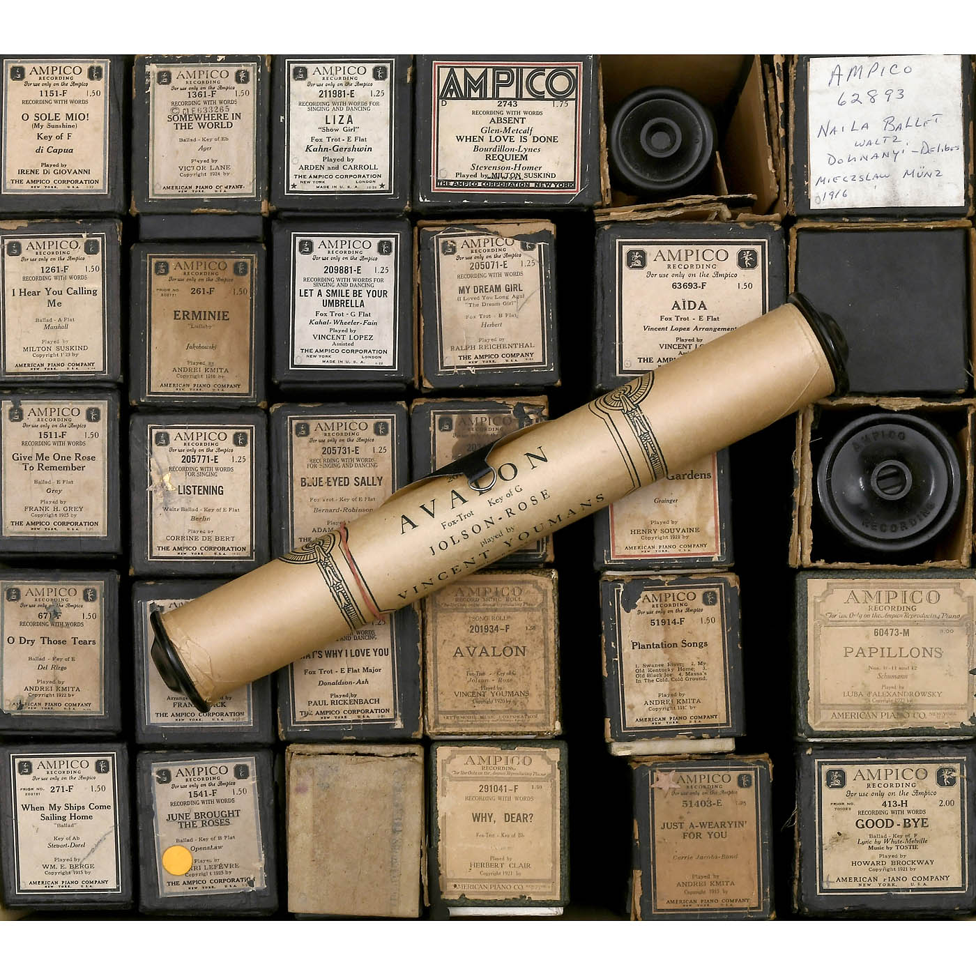 Original rolls by Ampico Corporation and re-cuts by Automatic Music Roll Co. and others, in various genres, predominantly classical, most in their original boxes. Condition: minor signs of wear to boxes, rolls mostly in good condition.
